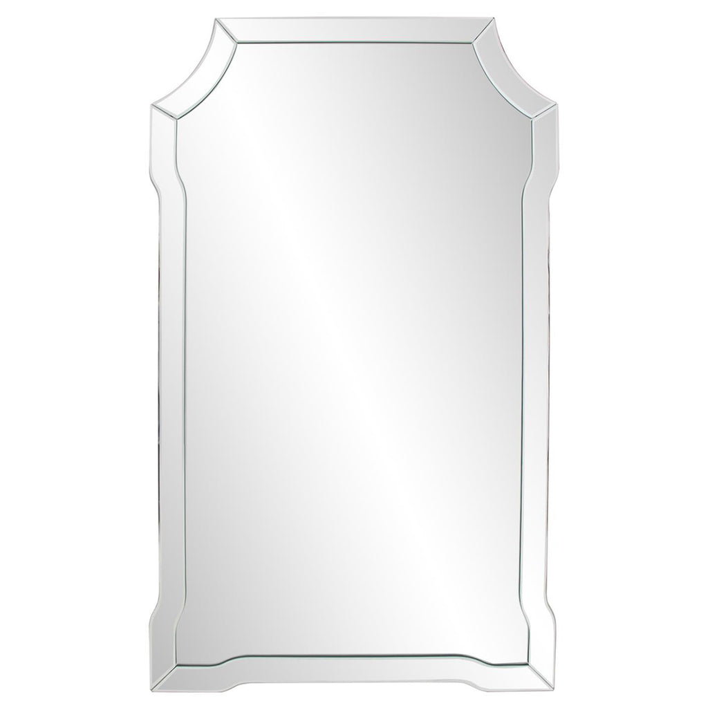 The elegant curves and lines of this mirror on mirror piece conjures up images of the sophisticated and glamours Hollywood in the 1920's. Named after the stylish film star Claudette Colbert, this mirror still reflects a style that blends effortlessly into classic as well as modern. The detailing of each mirrored piece, with it's beveled edges, gives the mirror an elegant contemporary twist.