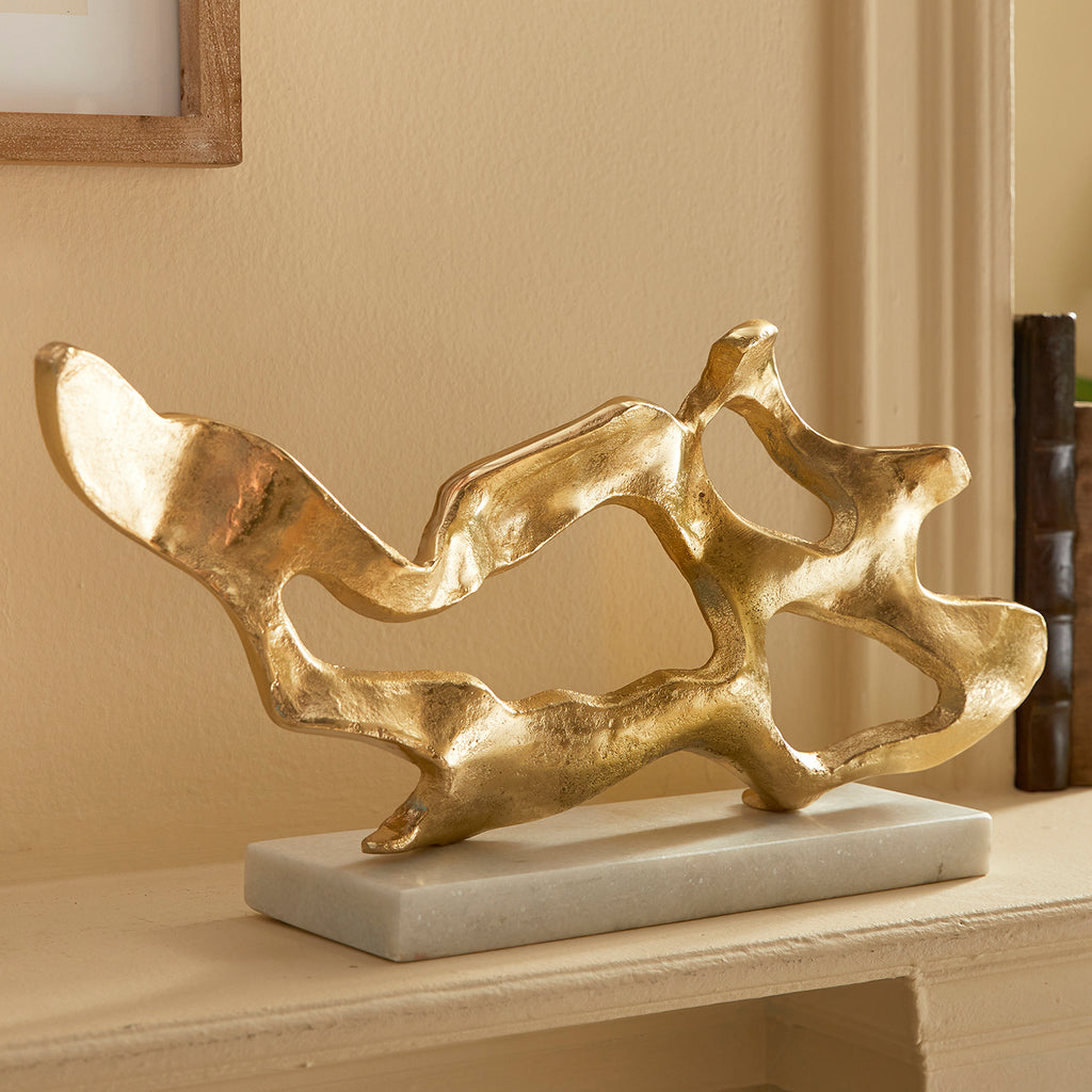 Elevate your coastal décor with this large driftwood-inspired abstract sculpture. Set on a white marble base, which adds a light upscale feel. Perfect for a well-styled bookshelf or console table.
