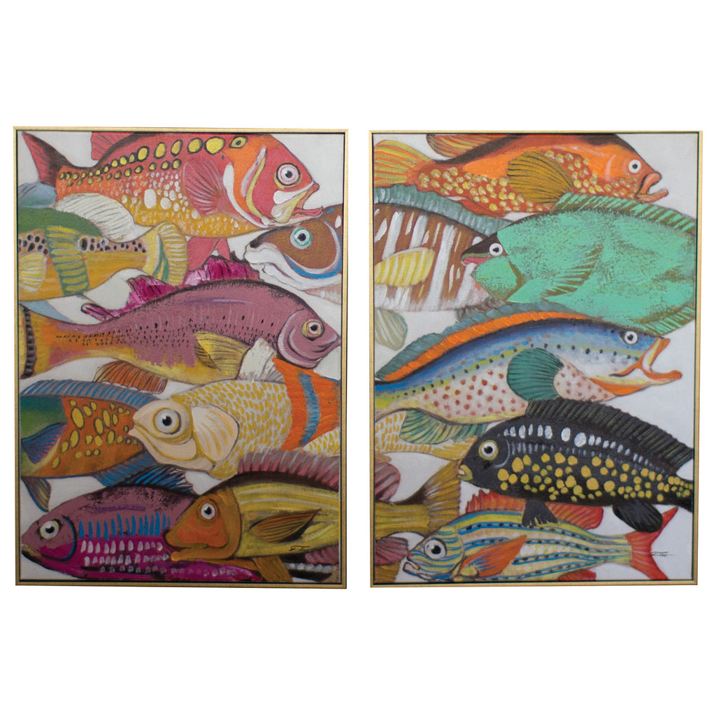 Feeling colorful? These tropical fish are sure to keep things bright in your home or office. Easy to hang, this set of paintings can make a statement in any environment.