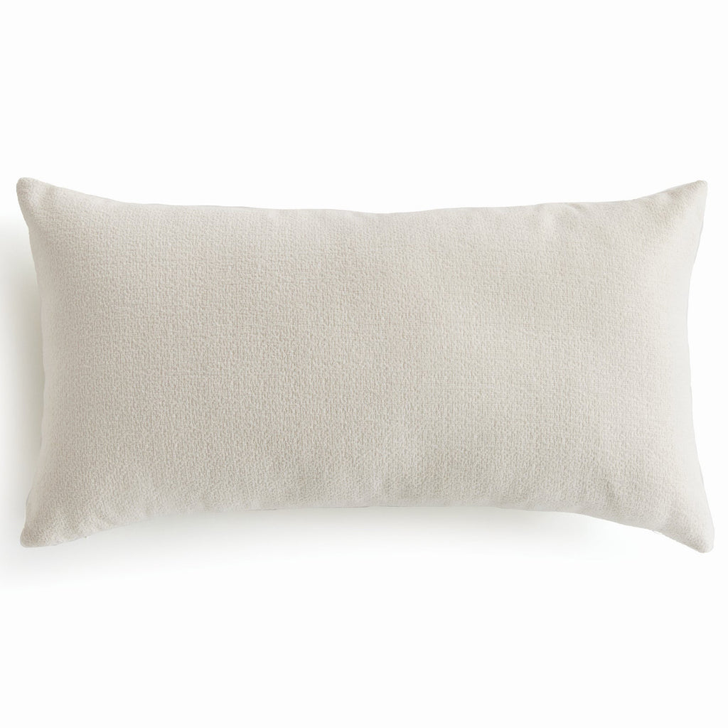 The indoor pillow that lives beautifully outdoors. Enjoy the upscale luxury and durability of Jacquard. With a woven light cream tone, it plays well with any palette. This pillow is weather resistant and responsibly made. Filled with 100% recycled fibers.