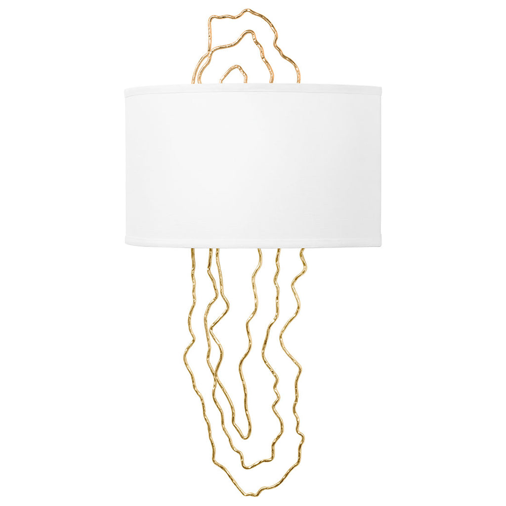 From high-drama statement pieces to subtle glamour, lighting by Corbett delivers the illuminated warmth and refinement your space needs. Ultra versatile wall sconces by Corbett can accent your living room, bedroom, bathroom, and any other area in your home that calls for a pop of light. Just like the street it's named after, 5th Avenue is the epitome of luxury. Inspired by the contour lines of a topography map, a series of swirling lines in vintage gold leaf fall beneath and rise above a large white linen drum shade. Light fills the shade from behind with a soft glow and reflects beautifully off both the wall and the gold leaf.