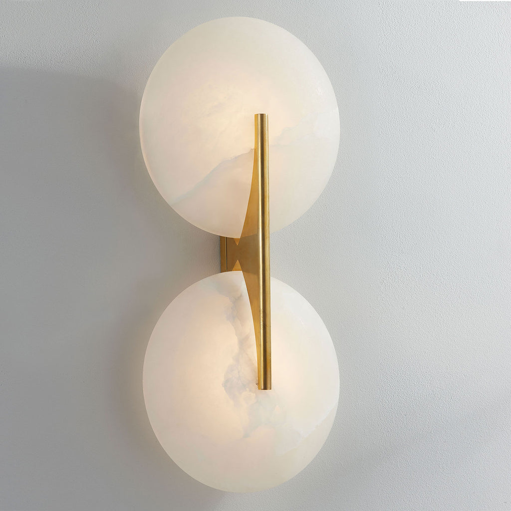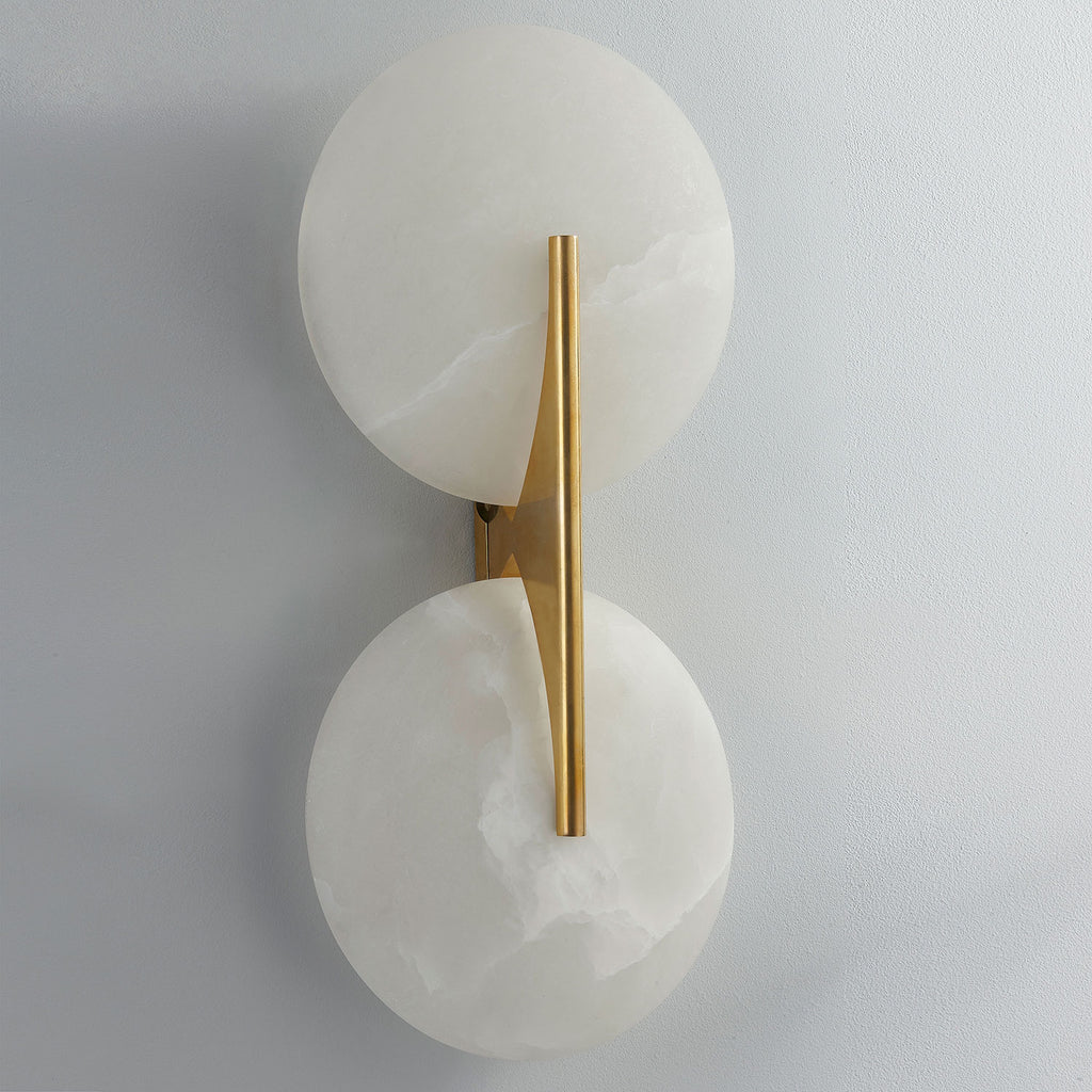 From high-drama statement pieces to subtle glamour, lighting by Corbett delivers the illuminated warmth and refinement your space needs. Asteria's alabaster discs are held in place by a single piece of Vintage or Black Brass metalwork. The alabaster gives off a delicate, moon-like glow when lit. This simple, refined sconce works well in many rooms of the home, including the bath.