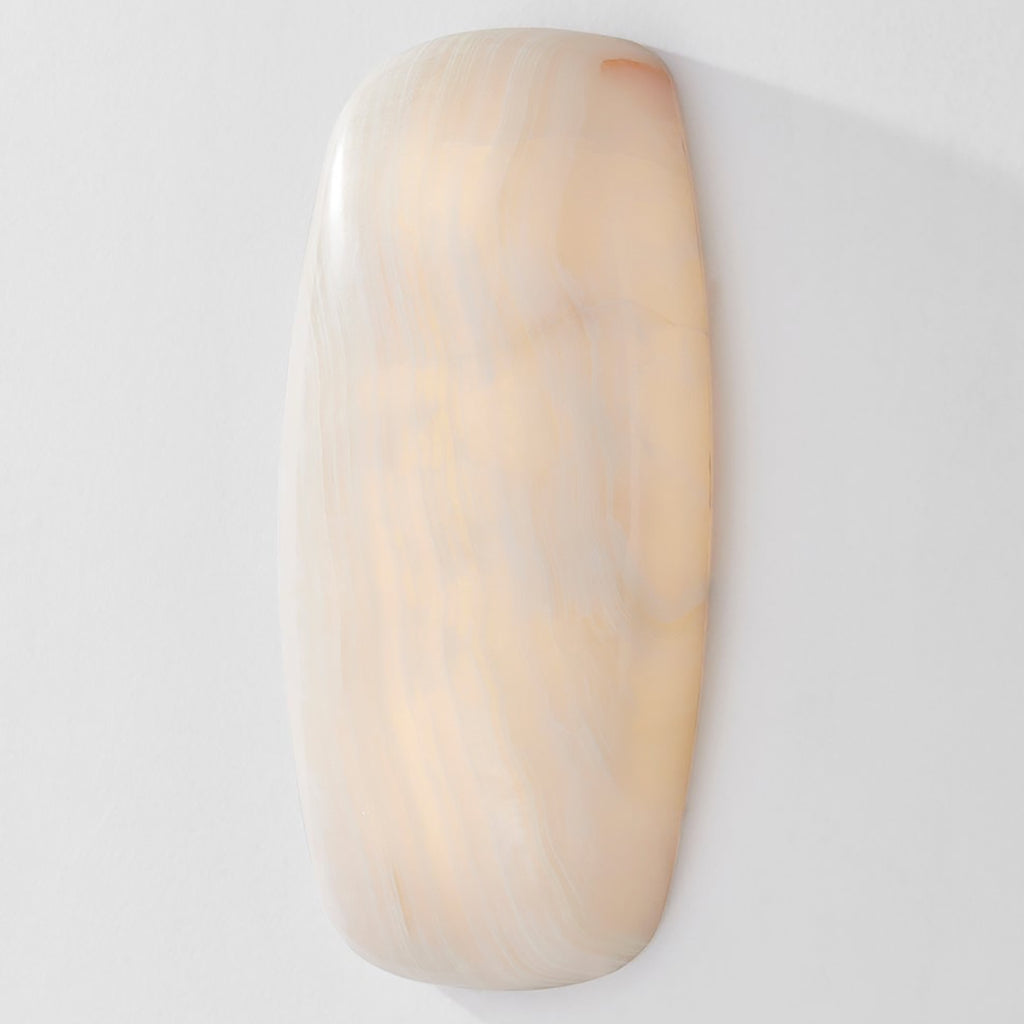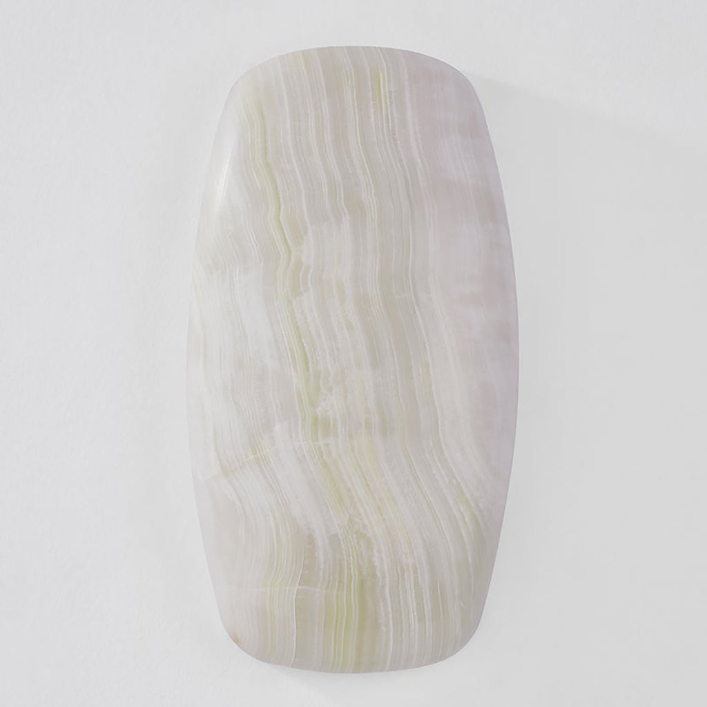 Sculpted from a single piece of Ice Onyx, Corbett Lighting Azzurra Wall Sconce emits a highly atmospheric, lit-from-within glow. The mesmerizing color striations vary slightly piece by piece, making this oblong sconce unique to your home or hallway. A concealed LED emanates a warm, welcoming glow when lit.