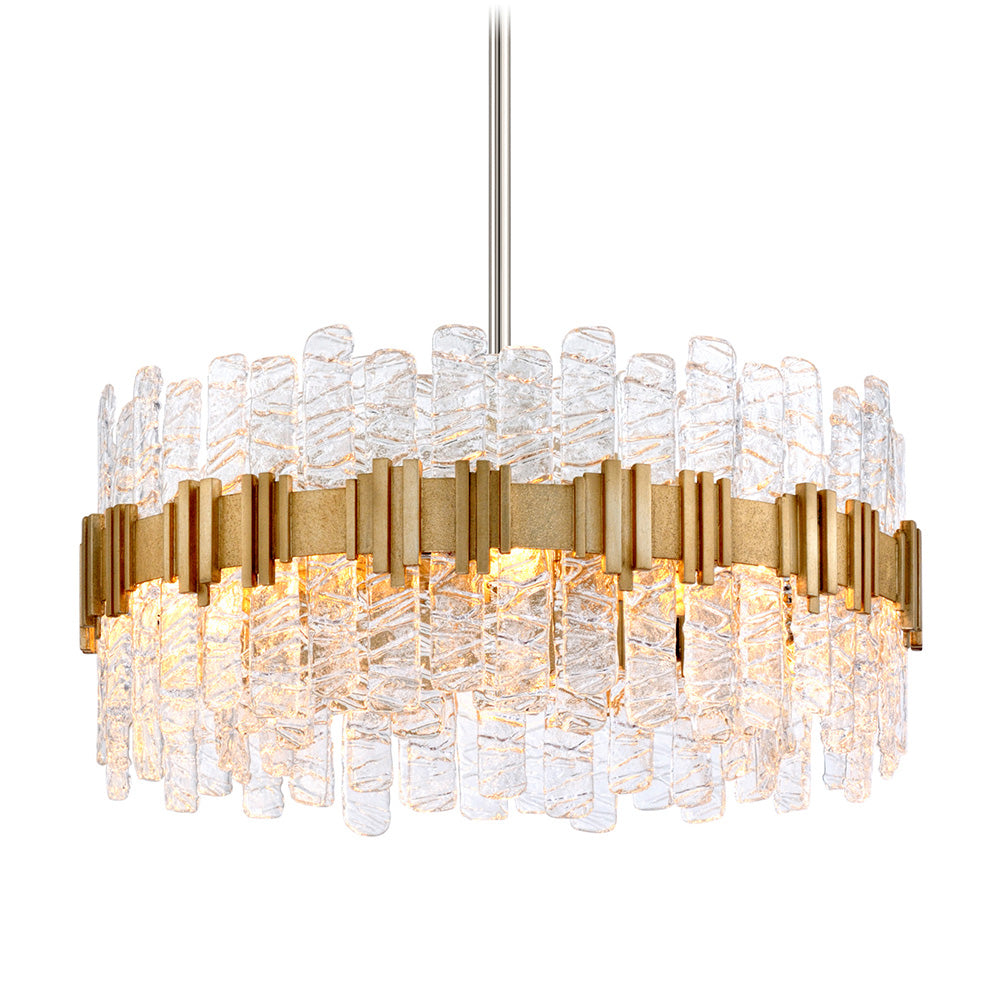 Creating icy, chiseled textures with both its artisanally-made glass and iron, the Corbett Ciro pendant conveys a dynamic sense of energy in frozen motion. With a hang-straight canopy and matching sconces, Ciro adds textural diversity and decorative verve in abundance to the space it adorns.