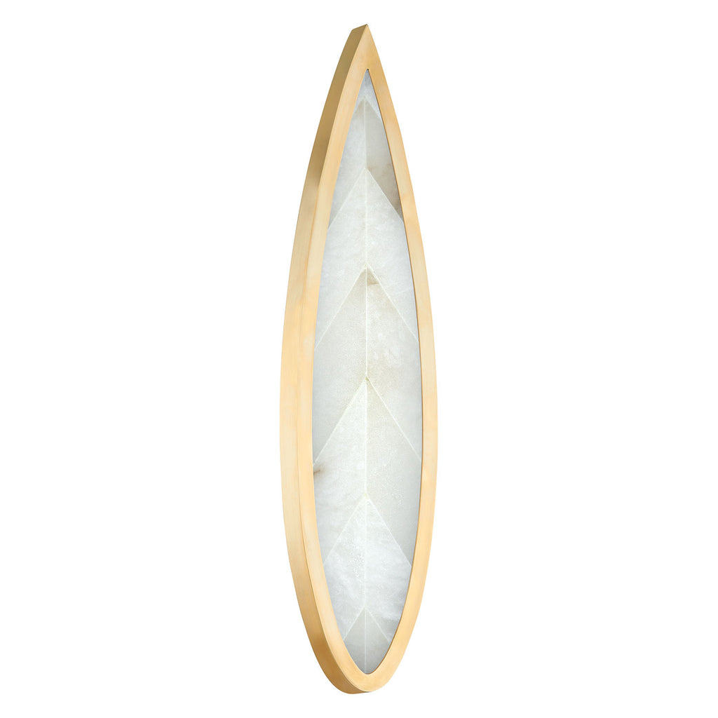From high-drama statement pieces to subtle glamour, lighting by Corbett delivers the illuminated warmth and refinement your space needs. Ultra versatile wall sconces by Corbett can accent your living room, bedroom, bathroom, and any other area in your home that calls for a pop of light. An alabaster shade is wrapped in an elongated teardrop frame of Vintage Brass making this understated sconce feel elegant and glamourous. The slim profile makes it an ideal choice for lighting hallways and powder rooms.
