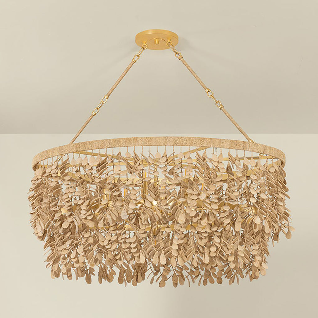 An ode to craftsmanship, the Corbett Lighting Naxos family is adorned with loosely draped strands of hand-carved coco shell pieces. The layering of smaller shell elements on each strand adds depth and volume, giving this family a sense of movement and a handcrafted beauty. Shaped like petals, the tonal pieces bring life to each design, including a 2-light wall sconce, a chandelier in three sizes, and an island light.