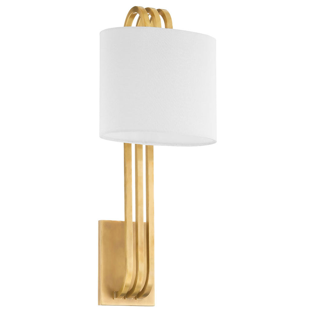 From high-drama statement pieces to subtle glamour, lighting by Corbett delivers the illuminated warmth and refinement your space needs. The Corbett Lysandra wall sconce is an Art Deco inspired, stately sconce. A series of clean, curved lines rise from a rectangular backplate to hold an elongated White Linen shade. The solid Vintage Brass metalwork gives off a retro vibe that works well with many different design styles.