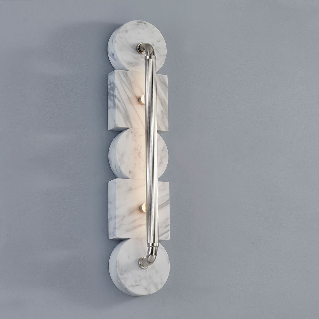 From high-drama statement pieces to subtle glamour, lighting by Corbett delivers the illuminated warmth and refinement your space needs. The Corbett Sena wall sconce features a stacked, repeated series of circles and squares are at the center of this geometric showstopper. Mixing materials and textures, the marble shapes in Nero Madero or Arabescato are lit by a ribbed metal bar in Vintage Brass or Burnished Nickel. Sena offers many stylish possibilities—as the sconce can be mounted vertically or horizontally.