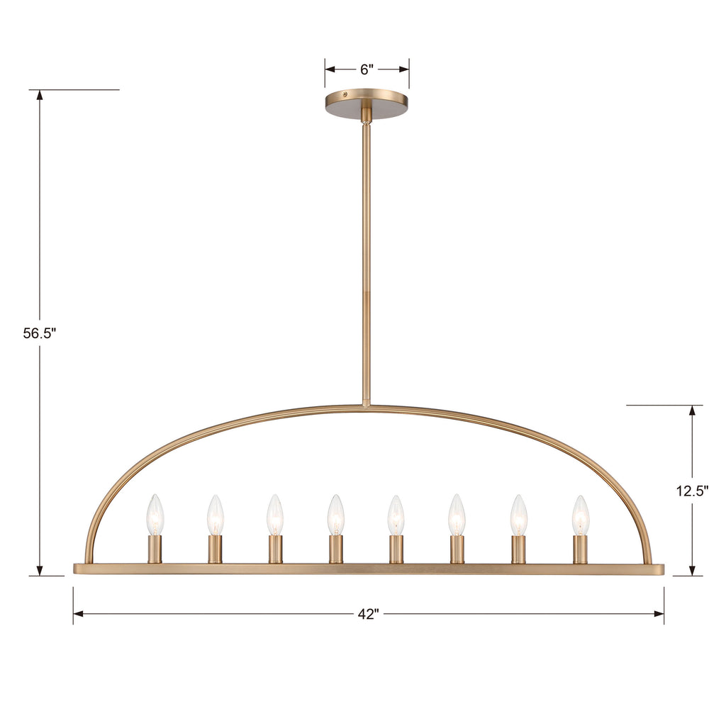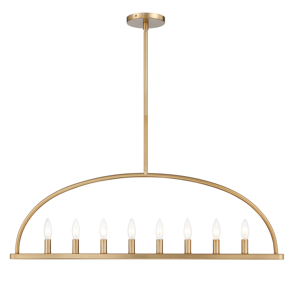 Crystorama is known for its standout lighting, which is exceptional in quality and design. From traditional all-crystal designs to transitional lighting collections, Crystorama offers styles that will match any décor and are always in fashion. The Abbott linear chandelier presents a simple, streamlined shape and clean lines. The open-concept frame features a metal arch and a sleek, narrow rod with a series of thin bulbs. Mounted above an island or over a dining room table, this fixture appeals to a minimalist sense of style. The Abbott comes in vibrant gold and black finish.