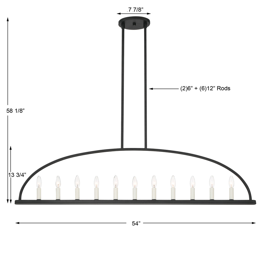 • 8-Light: 42in W x 1.5in D x 12.5in H, 11-Light: 54in W x 13.75in H
