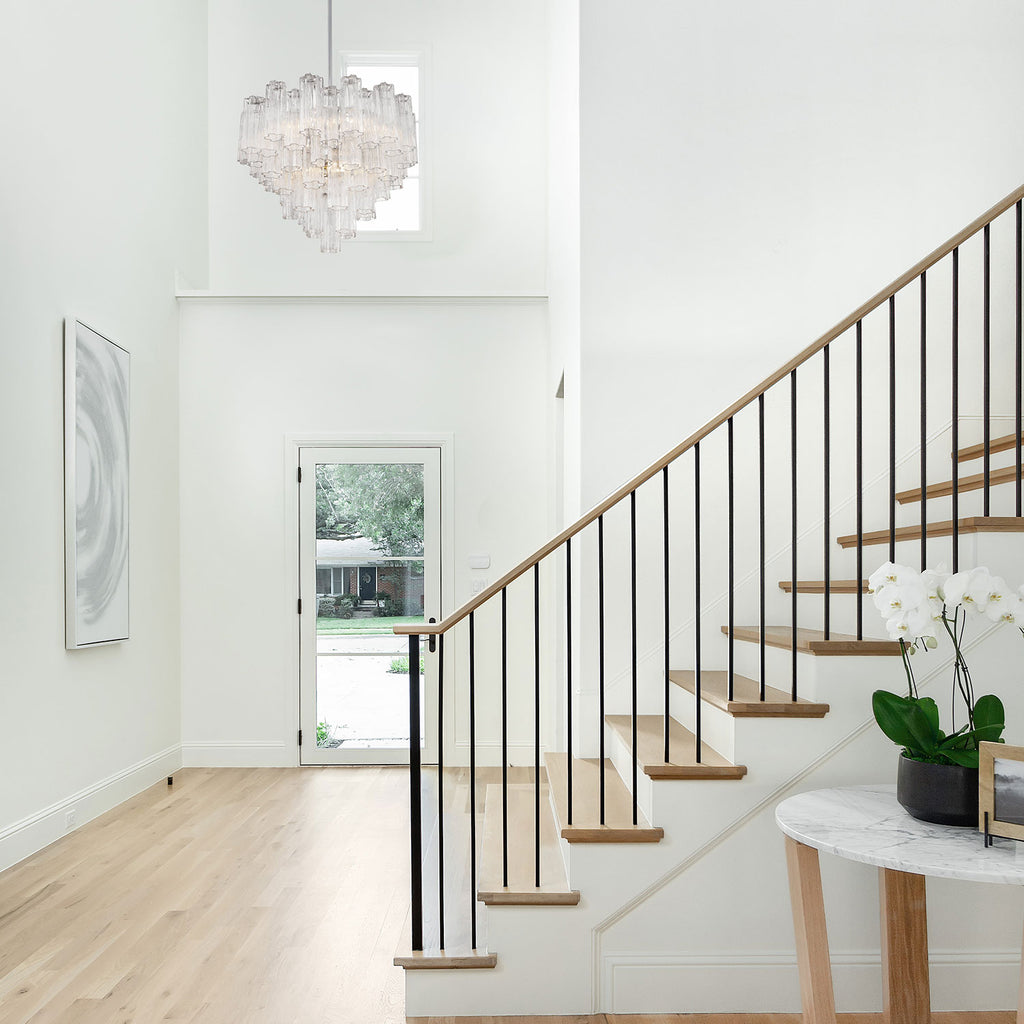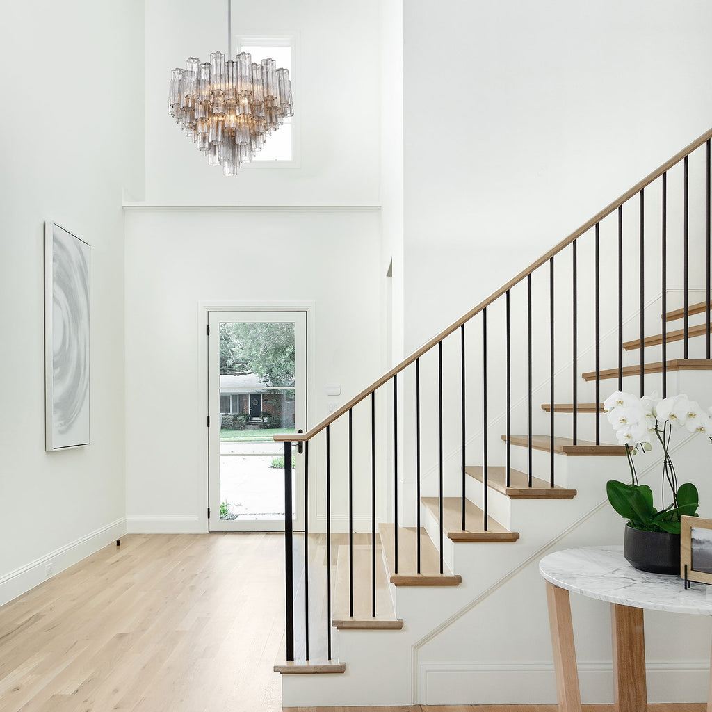 Crystorama is known for its standout lighting, which is exceptional in quality and design. From traditional all-crystal designs to transitional lighting collections, Crystorama offers styles that will match any décor and are always in fashion. The captivating Addis Lighting Collection is a modern-day interpretation of the iconic mid-century Tronchi chandelier. Inspired by its predecessor's sleek lines and geometric shapes, the Addis features a polished Chrome or Aged Brass metal frame that exudes sophistication and style. Its unique design showcases transparent tiers of textured Tronchi glass tubes, forming a mesmerizing 5-point rounded star shape. Choose from a range of glass colors, including clear, amber, smoke, and white, or the stunning Autumn option, which features a captivating multicolor disposition of amber, clear, and smoke Tronchi glass. The Addis Lighting Collection offers various sizes and finishes, allowing you to find the perfect fit for your space while adding a touch of timeless elegance. Addis collection features a versatile transitional design. A merging of design utilizing minimalist styling and clean lines that add visual appeal to a space. This multi tiered modern fixture gives maximum light output either as a chandelier or a ceiling mount. Polished Chrome has a silver finish with a cooler tone. It has a sleek mirror-like finish and fits most décor styles from vintage to deco and modern to contemporary.