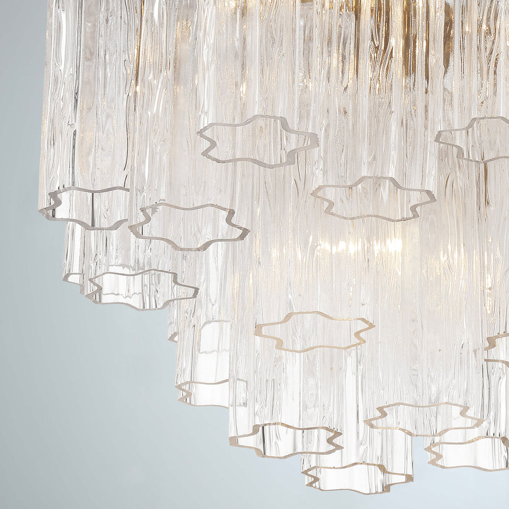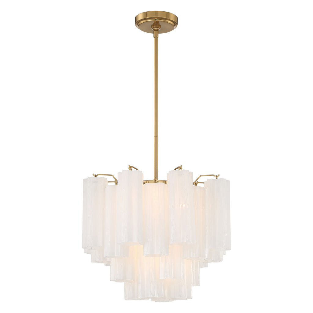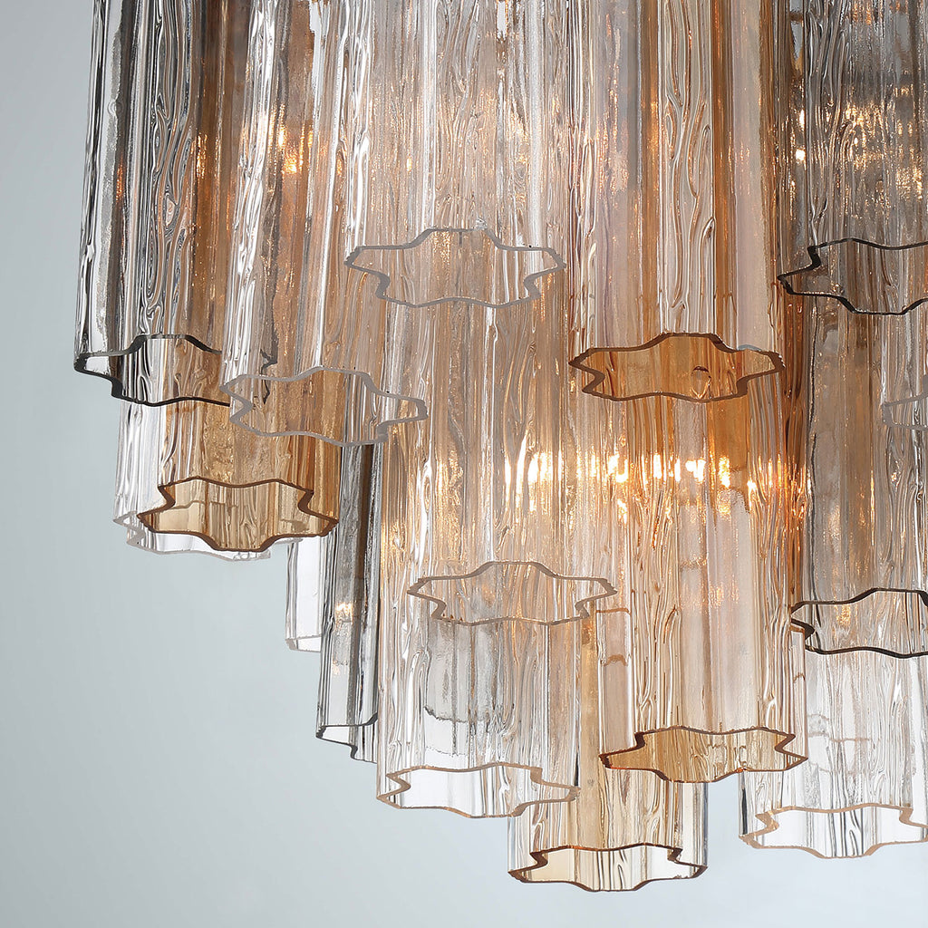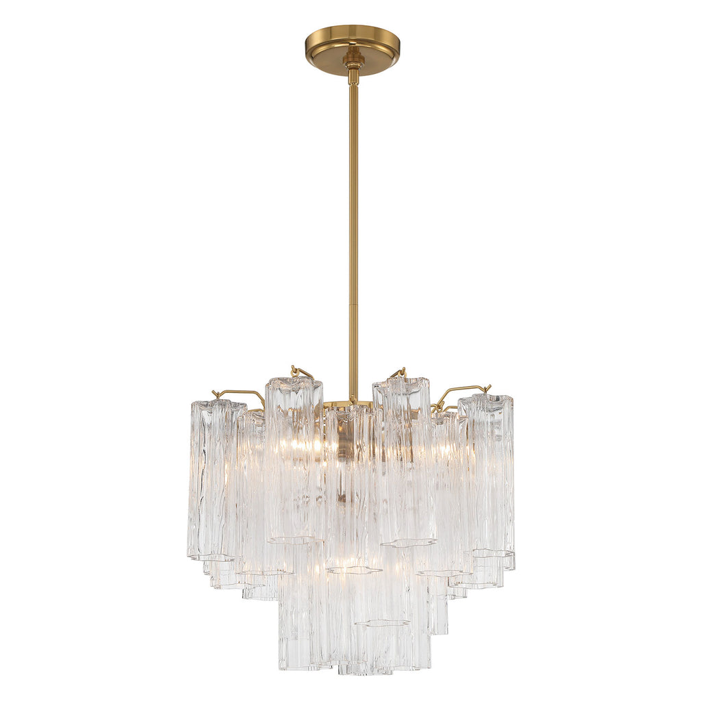 Crystorama is known for its standout lighting, which is exceptional in quality and design. From traditional all-crystal designs to transitional lighting collections, Crystorama offers styles that will match any décor and are always in fashion. The captivating Addis Lighting Collection is a modern-day interpretation of the iconic mid-century Tronchi chandelier. Inspired by its predecessor's sleek lines and geometric shapes, the Addis features a polished Chrome or Aged Brass metal frame that exudes sophistication and style. Its unique design showcases transparent tiers of textured Tronchi glass tubes, forming a mesmerizing 5-point rounded star shape. Choose from a range of glass colors, including clear, amber, smoke, and white, or the stunning Autumn option, which features a captivating multicolor disposition of amber, clear, and smoke Tronchi glass. The Addis Lighting Collection offers various sizes and finishes, allowing you to find the perfect fit for your space while adding a touch of timeless elegance. Addis collection features a versatile transitional design. A merging of design utilizing minimalist styling and clean lines that add visual appeal to a space. This multi tiered modern fixture gives maximum light output either as a chandelier or a ceiling mount. Aged Brass metal finish is treated to look aged and have a rich hue. This shade adds a luxurious touch to any room and is perfect for modern and contemporary settings.