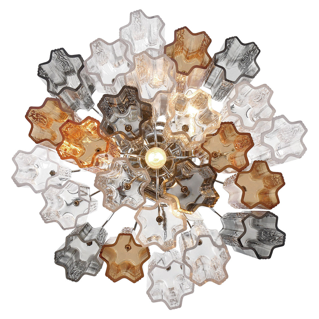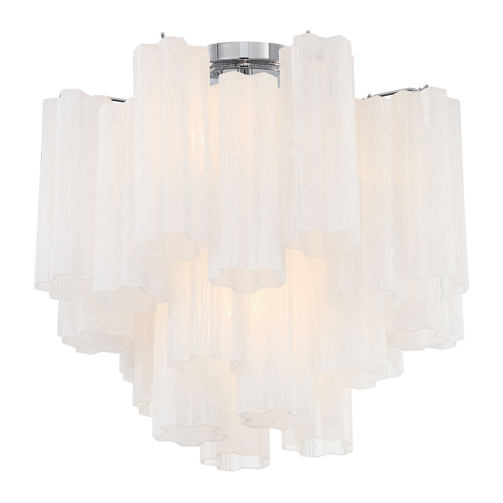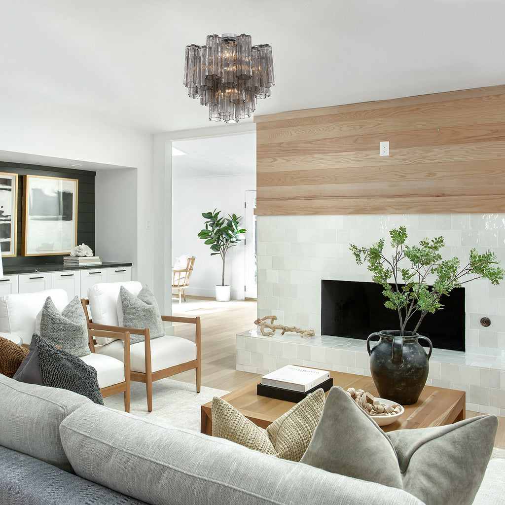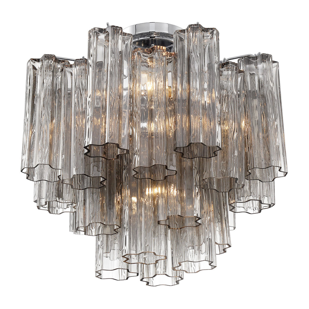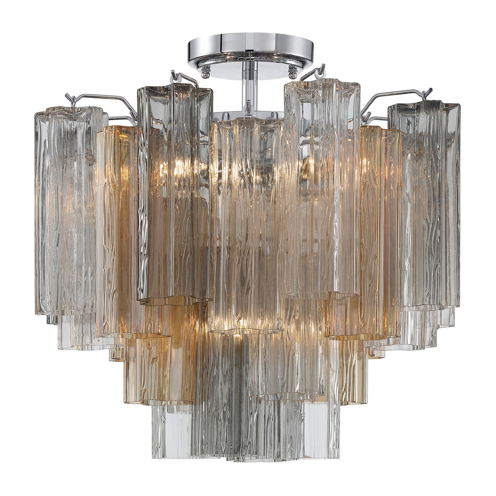 Crystorama is known for its standout lighting, which is exceptional in quality and design. From traditional all-crystal designs to transitional lighting collections, Crystorama offers styles that will match any décor and are always in fashion. The captivating Addis Lighting Collection is a modern-day interpretation of the iconic mid-century Tronchi chandelier. Inspired by its predecessor's sleek lines and geometric shapes, the Addis features a polished Chrome or Aged Brass metal frame that exudes sophistication and style. Its unique design showcases transparent tiers of textured Tronchi glass tubes, forming a mesmerizing 5-point rounded star shape. Choose from a range of glass colors, including clear, amber, smoke, and white, or the stunning Autumn option, which features a captivating multicolor disposition of amber, clear, and smoke Tronchi glass. The Addis Lighting Collection offers various sizes and finishes, allowing you to find the perfect fit for your space while adding a touch of timeless elegance. Addis collection features a versatile transitional design. A merging of design utilizing minimalist styling and clean lines that add visual appeal to a space. This multi tiered modern fixture gives maximum light output either as a chandelier or a ceiling mount. Polished Chrome has a silver finish with a cooler tone. It has a sleek mirror-like finish and fits most décor styles from vintage to deco and modern to contemporary.