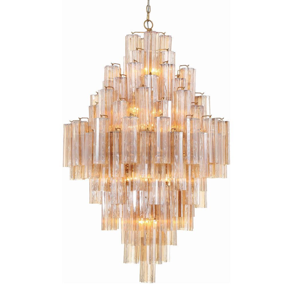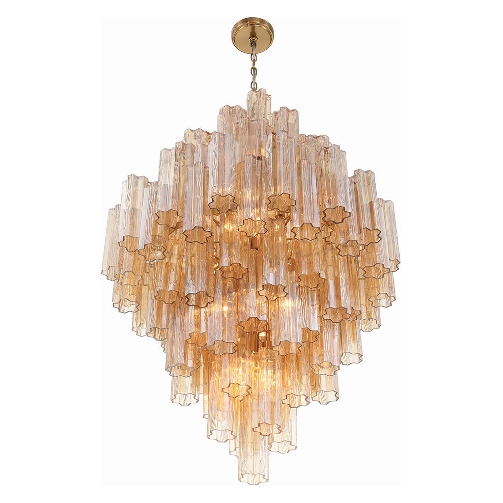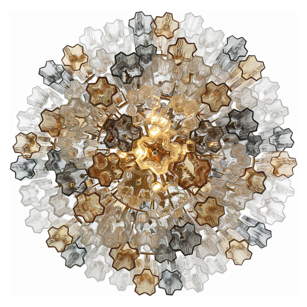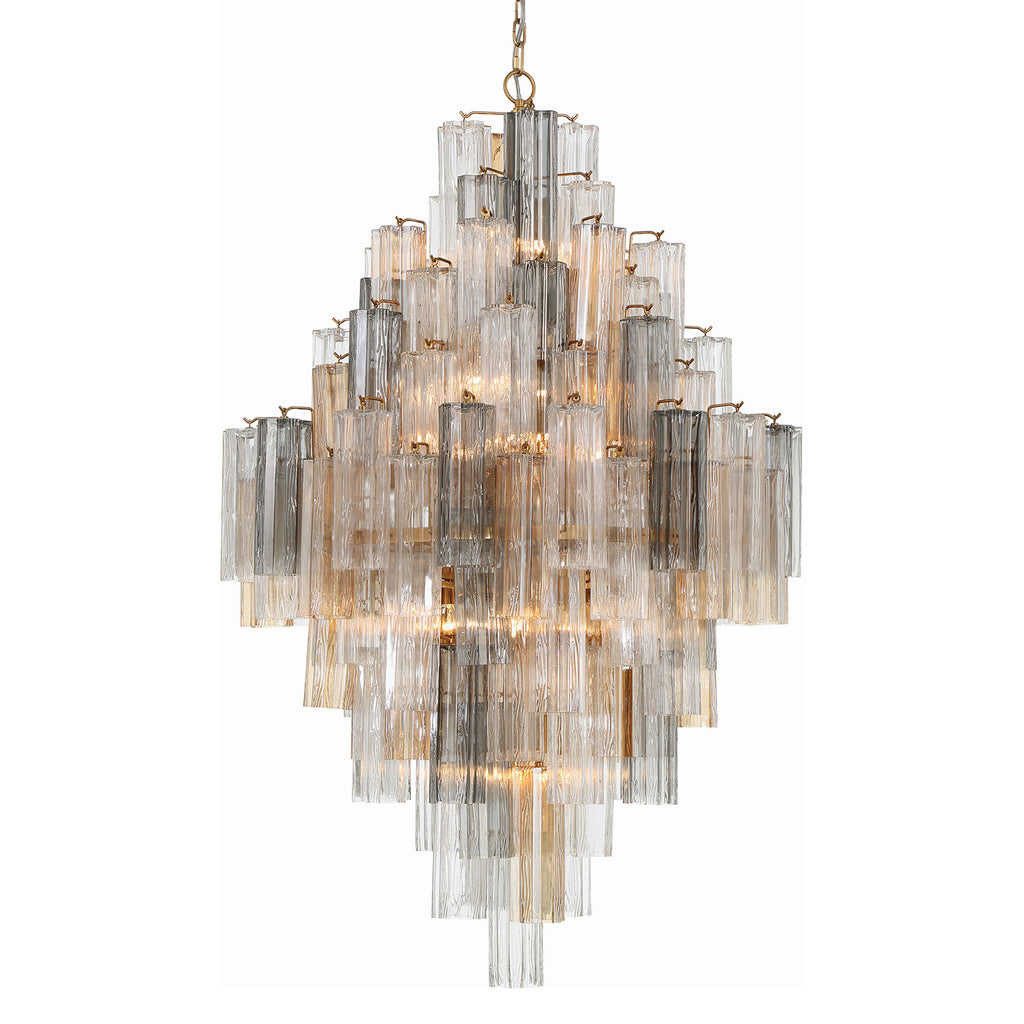 Crystorama is known for its standout lighting, which is exceptional in quality and design. From traditional all-crystal designs to transitional lighting collections, Crystorama offers styles that will match any décor and are always in fashion. A stylish beauty. The captivating Addis Lighting Collection is a modern-day interpretation of the iconic mid-century Tronchi chandelier. Inspired by its predecessor's sleek lines and geometric shapes, the Addis features a polished Chrome or Aged Brass metal frame that exudes sophistication and style. Its unique design showcases transparent tiers of textured Tronchi glass tubes, forming a mesmerizing 5-point rounded star shape. Choose from a range of glass colors, including clear, amber, smoke, and white, or the stunning Autumn option, which features a captivating multicolor disposition of amber, clear, and smoke Tronchi glass. The Addis Lighting Collection offers various sizes and finishes, allowing you to find the perfect fit for your space while adding a touch of timeless elegance. Authorized for use in dry interior locations.
