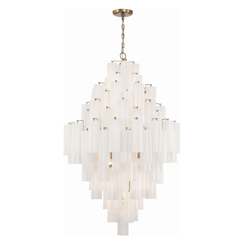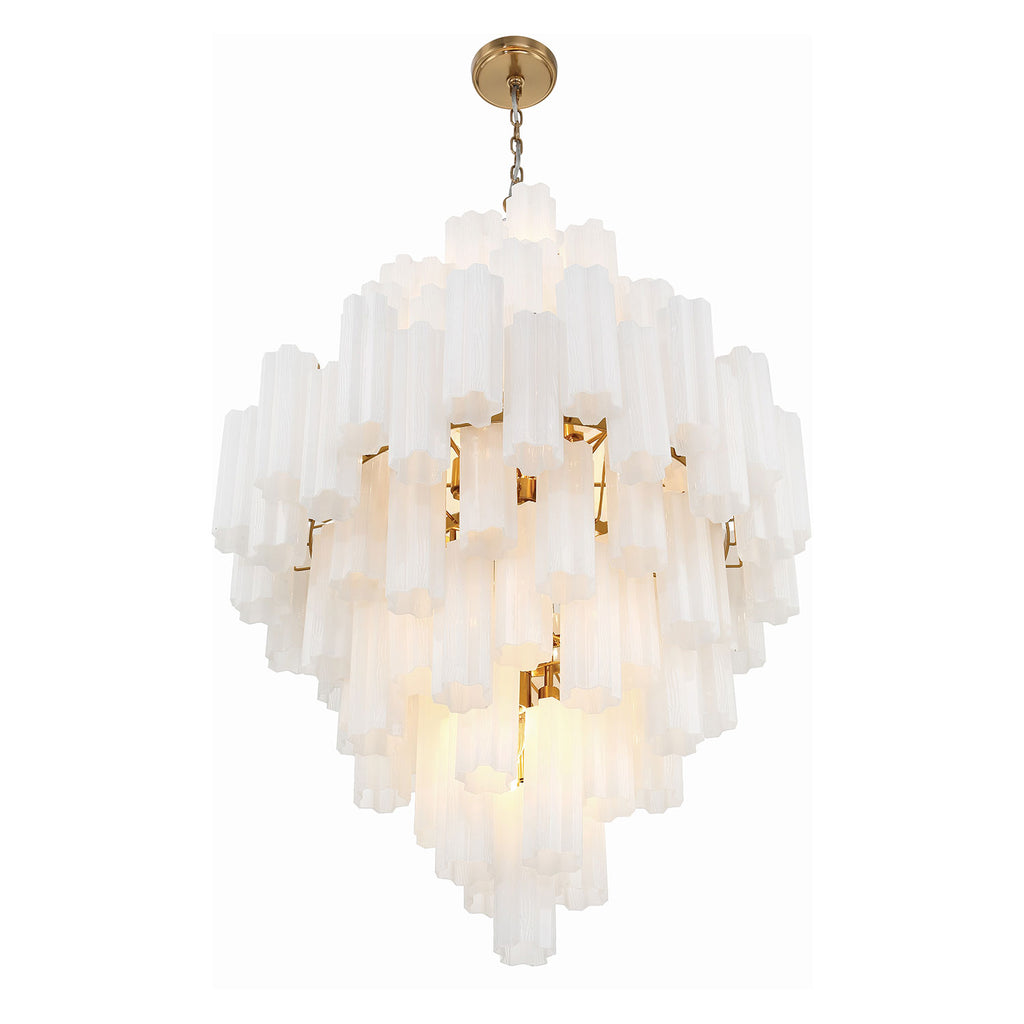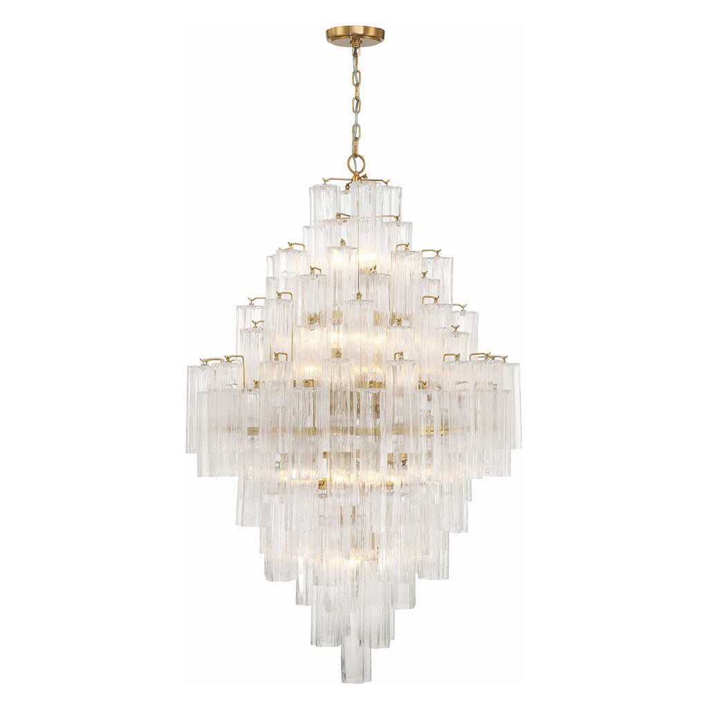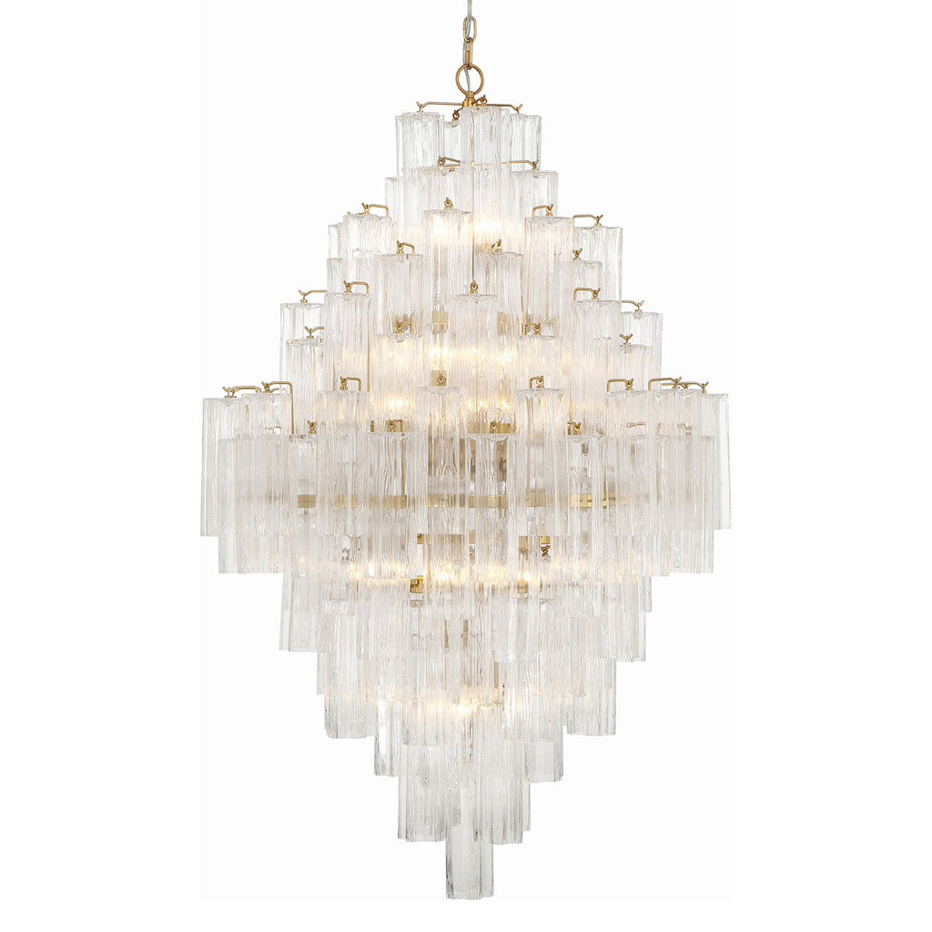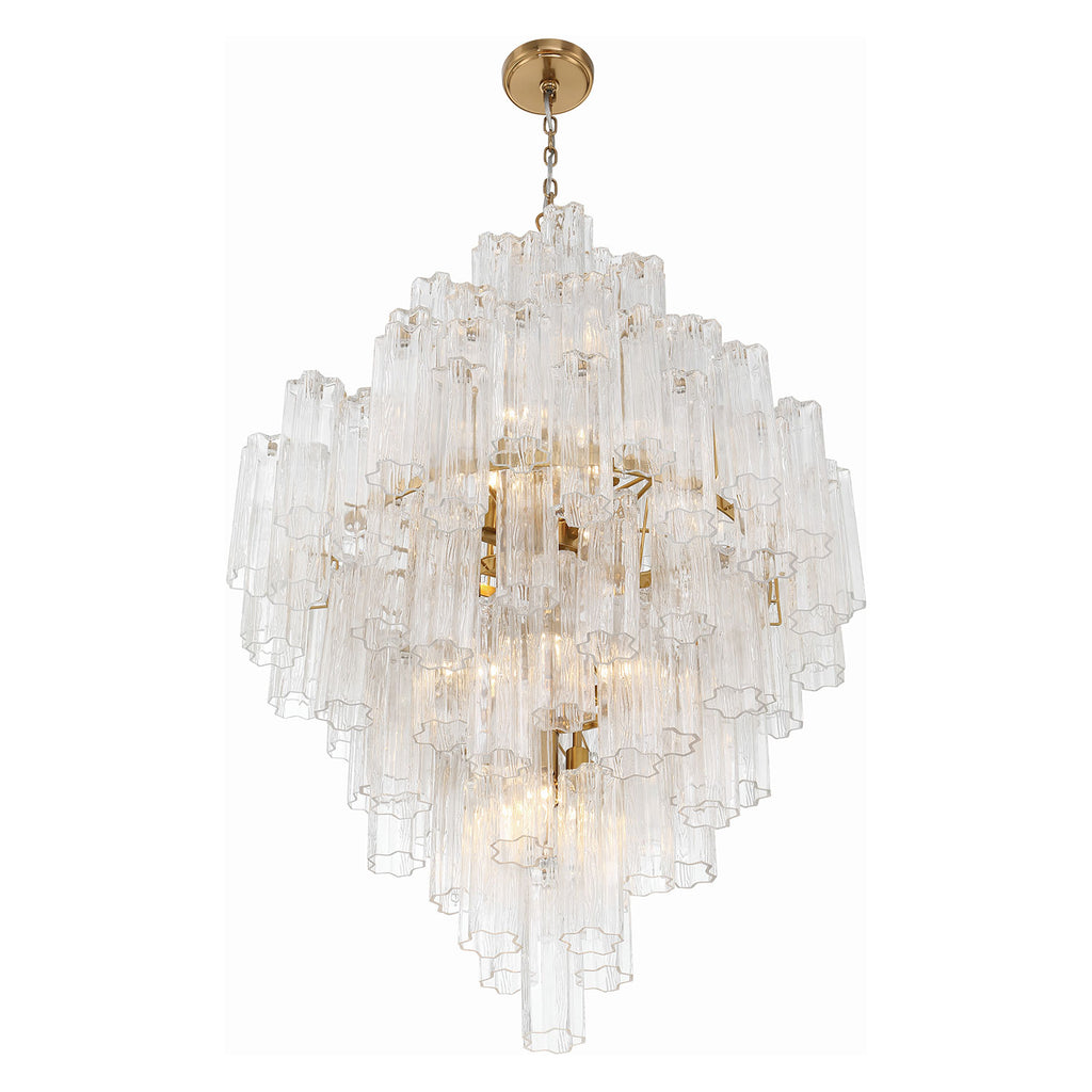 Crystorama is known for its standout lighting, which is exceptional in quality and design. From traditional all-crystal designs to transitional lighting collections, Crystorama offers styles that will match any décor and are always in fashion. A stylish beauty. The captivating Addis Lighting Collection is a modern-day interpretation of the iconic mid-century Tronchi chandelier. Inspired by its predecessor's sleek lines and geometric shapes, the Addis features a polished Chrome or Aged Brass metal frame that exudes sophistication and style. Its unique design showcases transparent tiers of textured Tronchi glass tubes, forming a mesmerizing 5-point rounded star shape. Choose from a range of glass colors, including clear, amber, smoke, and white, or the stunning Autumn option, which features a captivating multicolor disposition of amber, clear, and smoke Tronchi glass. The Addis Lighting Collection offers various sizes and finishes, allowing you to find the perfect fit for your space while adding a touch of timeless elegance. Authorized for use in dry interior locations.