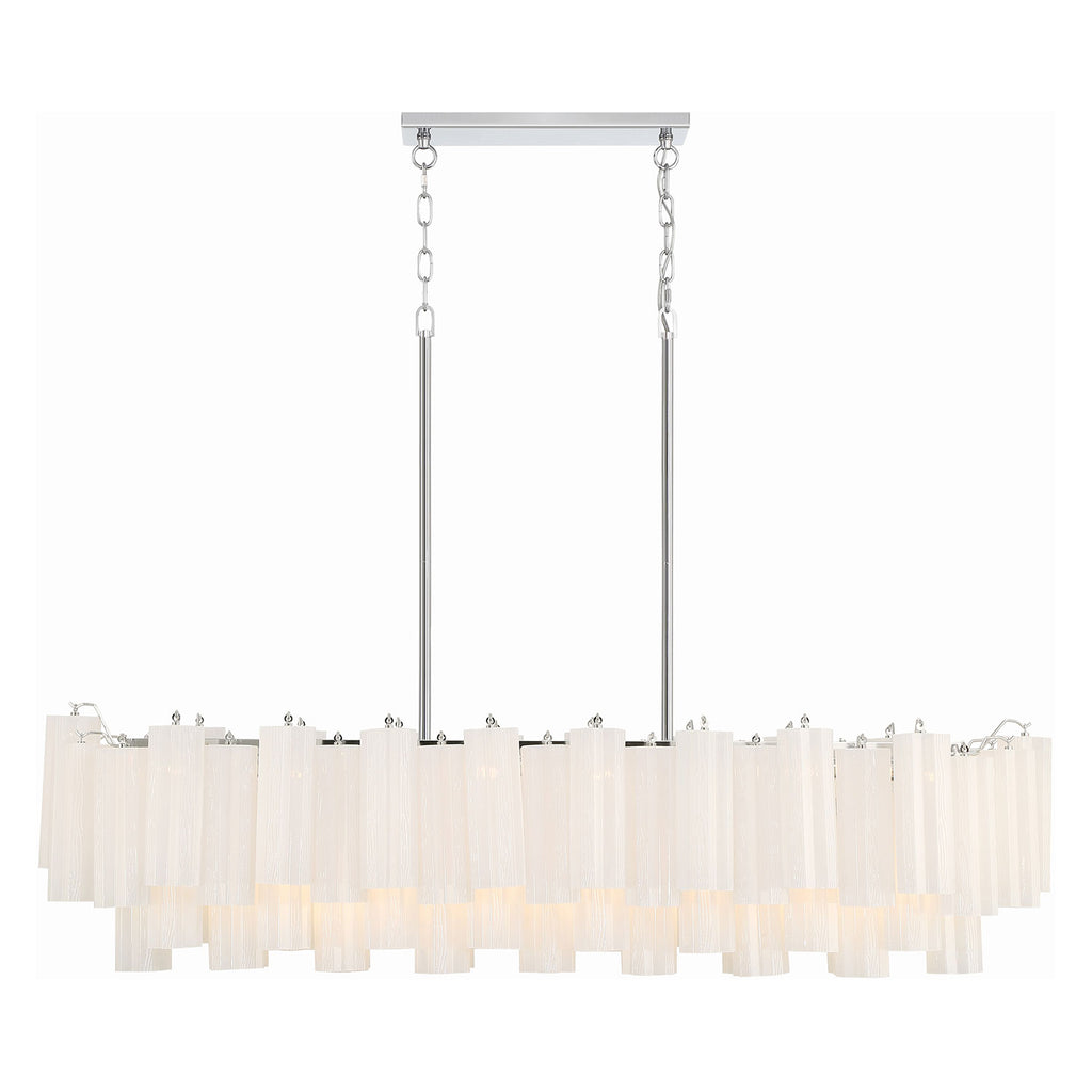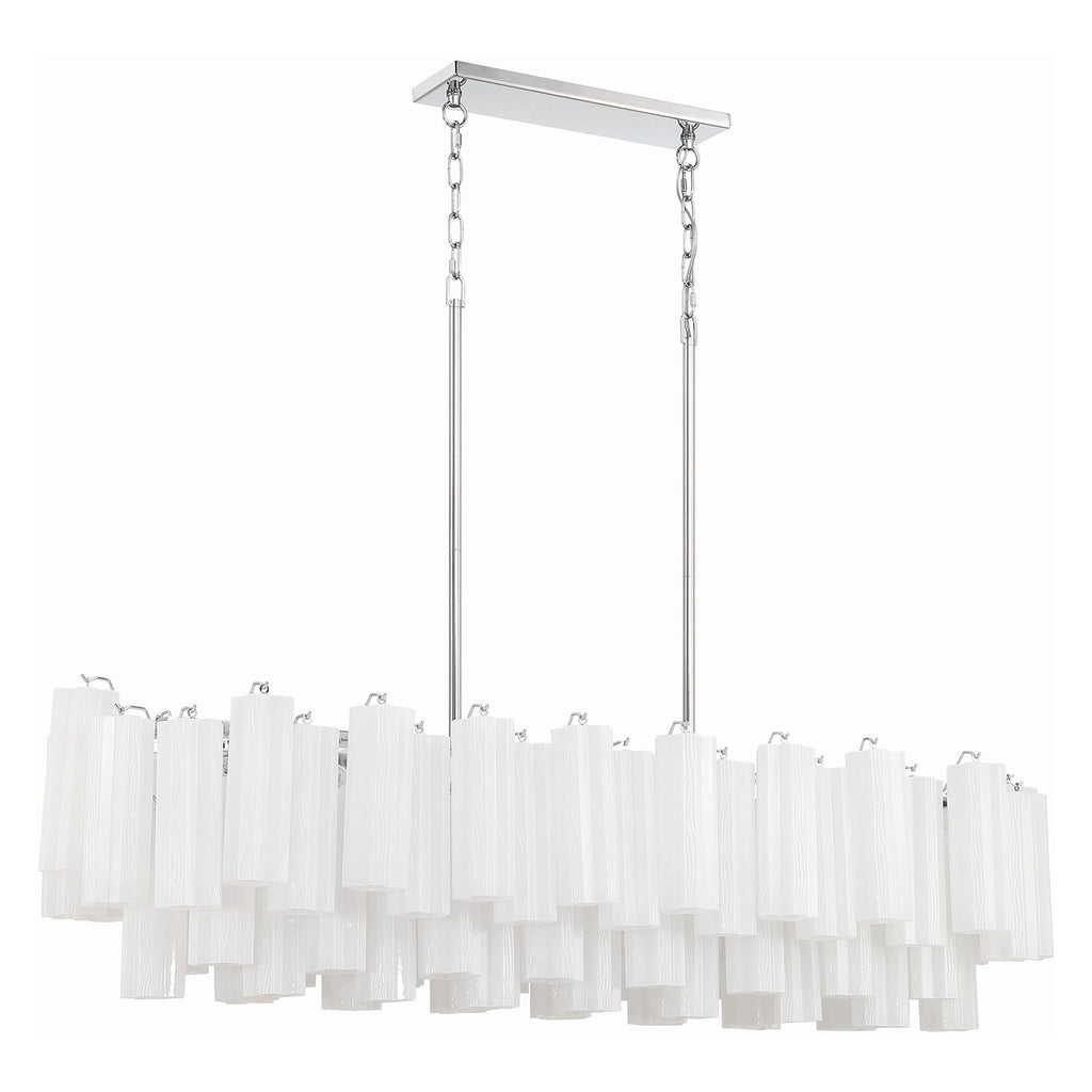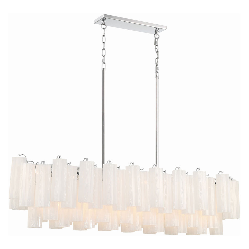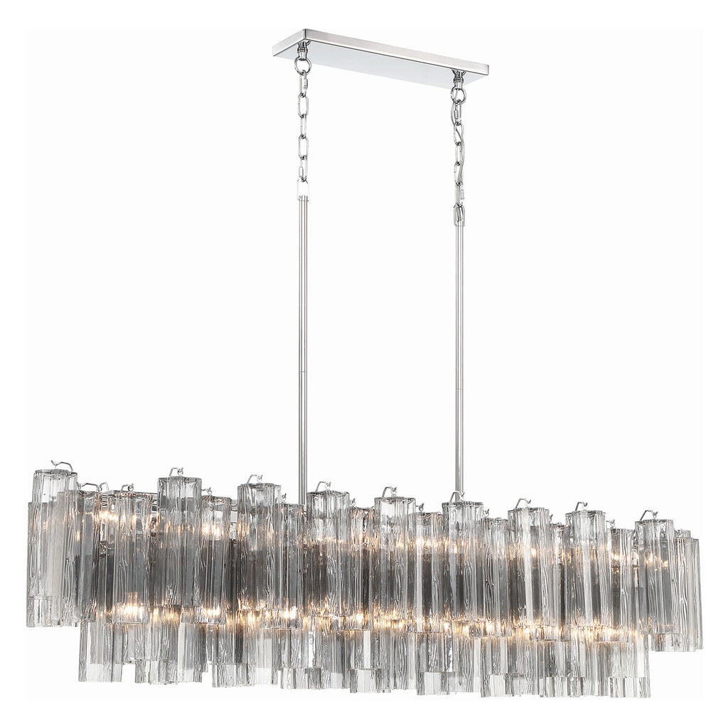 Crystorama is known for its standout lighting, which is exceptional in quality and design. From traditional all-crystal designs to transitional lighting collections, Crystorama offers styles that will match any décor and are always in fashion. A stylish beauty. The captivating Addis Lighting Collection is a modern-day interpretation of the iconic mid-century Tronchi chandelier. Inspired by its predecessor's sleek lines and geometric shapes, the Addis features a polished Chrome or Aged Brass metal frame that exudes sophistication and style. Its unique design showcases transparent tiers of textured Tronchi glass tubes, forming a mesmerizing 5-point rounded star shape. Choose from a range of glass colors, including clear, amber, smoke, and white, or the stunning Autumn option, which features a captivating multicolor disposition of amber, clear, and smoke Tronchi glass. The Addis Lighting Collection offers various sizes and finishes, allowing you to find the perfect fit for your space while adding a touch of timeless elegance. Authorized for use in dry interior locations.