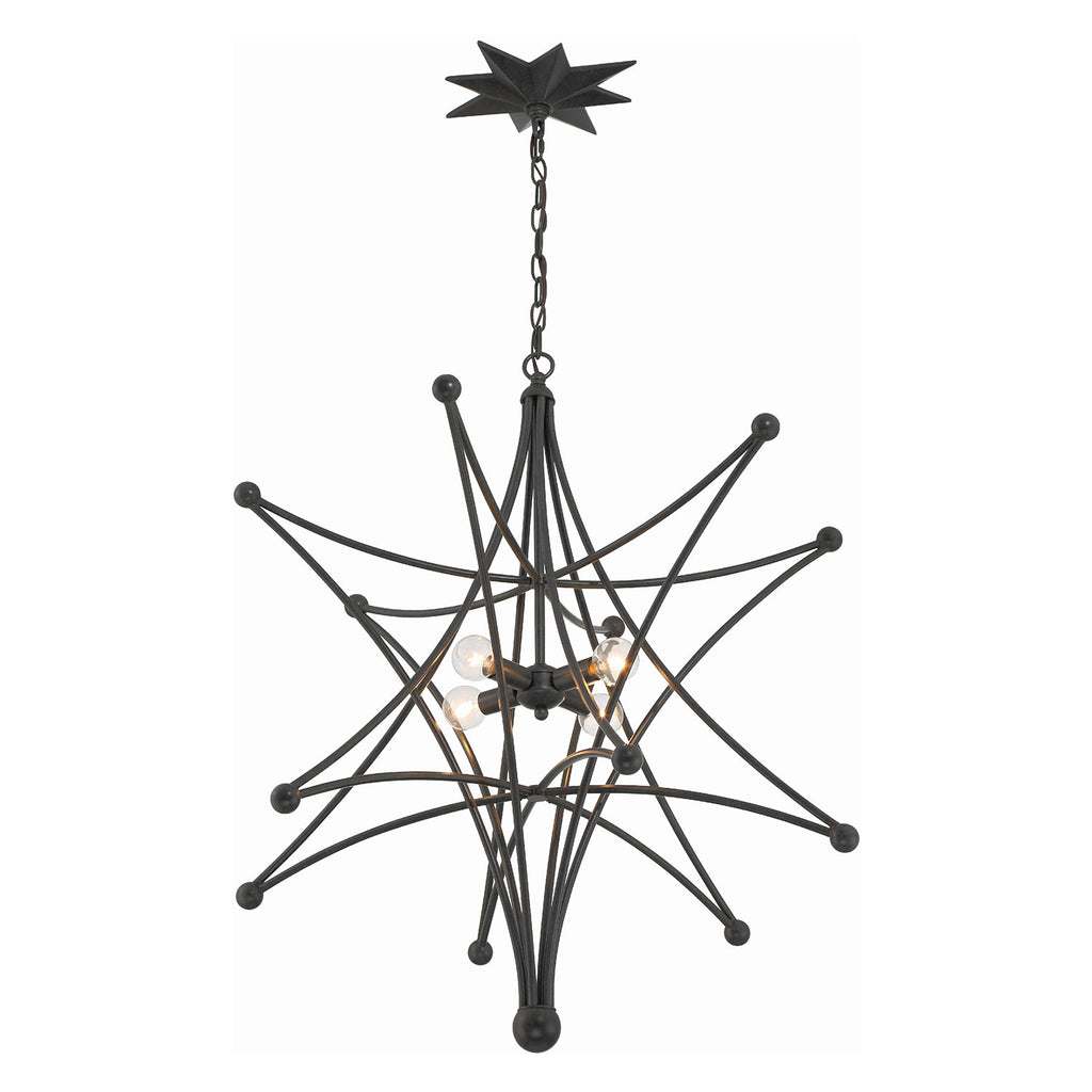 Crystorama is known for its standout lighting, which is exceptional in quality and design. From traditional all-crystal designs to transitional lighting collections, Crystorama offers styles that will match any décor and are always in fashion. Bring stargazing indoors with the conversation starters of the Astro collection. A little bit cowboy, a little bit Olde World, and a little bit modern, the Astro collection marries hallmarks of each with whimsy and out of this world styling allowing them to work with a variety of decors. Perfect for adding a little rustic edge to your decor. Astro collection features a versatile farmhouse / rustic design. A merging of design utilizing minimalist styling and clean lines that add visual appeal to a space. Convertible; can be installed as a wall mount or ceiling mount. Black metal finish, perfect for farmhouse & rustic settings.