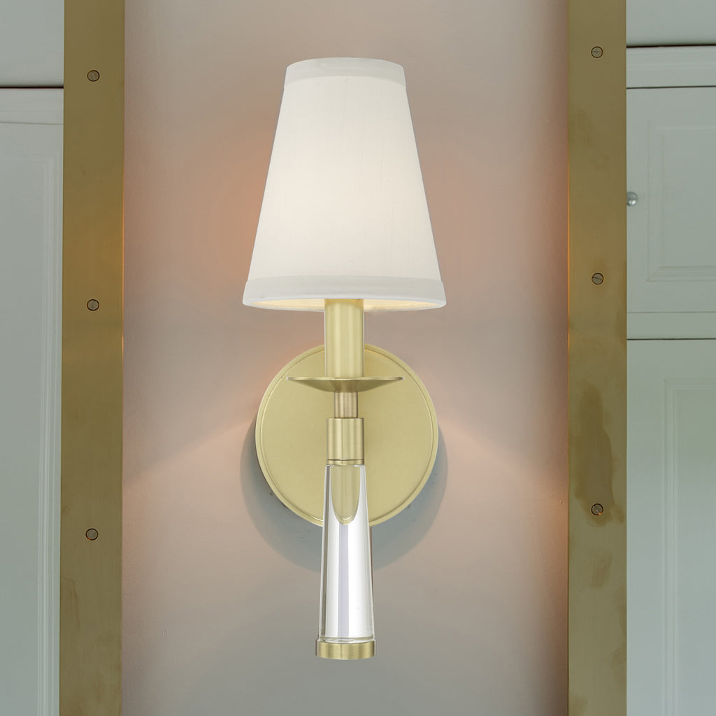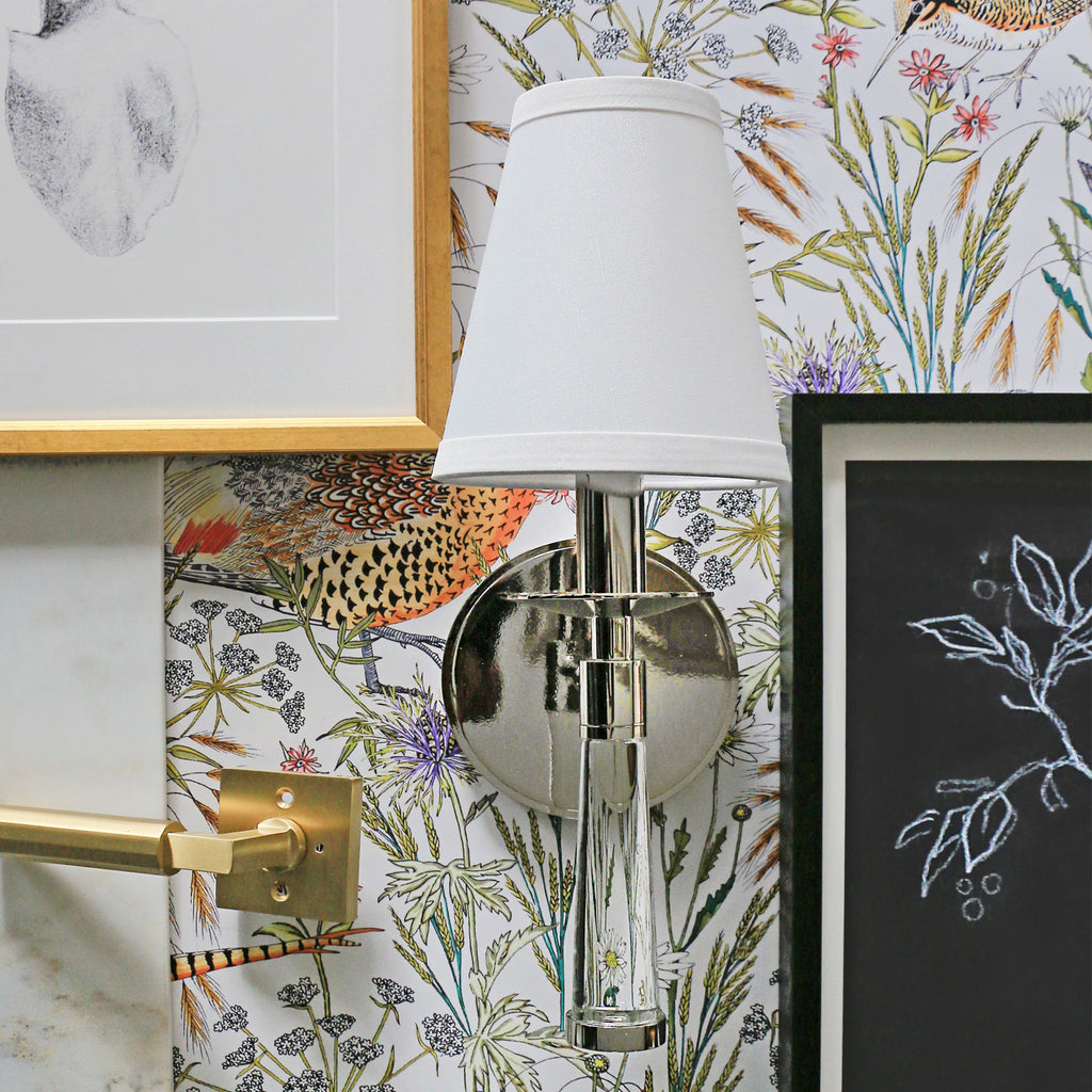 Crystorama is known for its standout lighting, which is exceptional in quality and design. From traditional all-crystal designs to transitional lighting collections, Crystorama offers styles that will match any décor and are always in fashion. Both timeless and transitional, the minimalist design makes the Baxter ideal for any space in the home. With a distinctive lucite tail and tapered white silk shade, this fixture is a smart choice for a hallway, bathroom, bedroom, or flanked on both sides of a fireplace.
