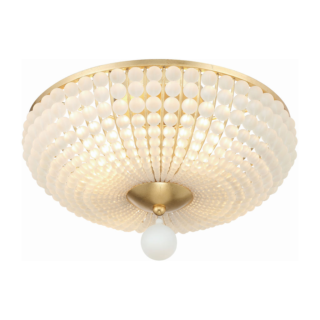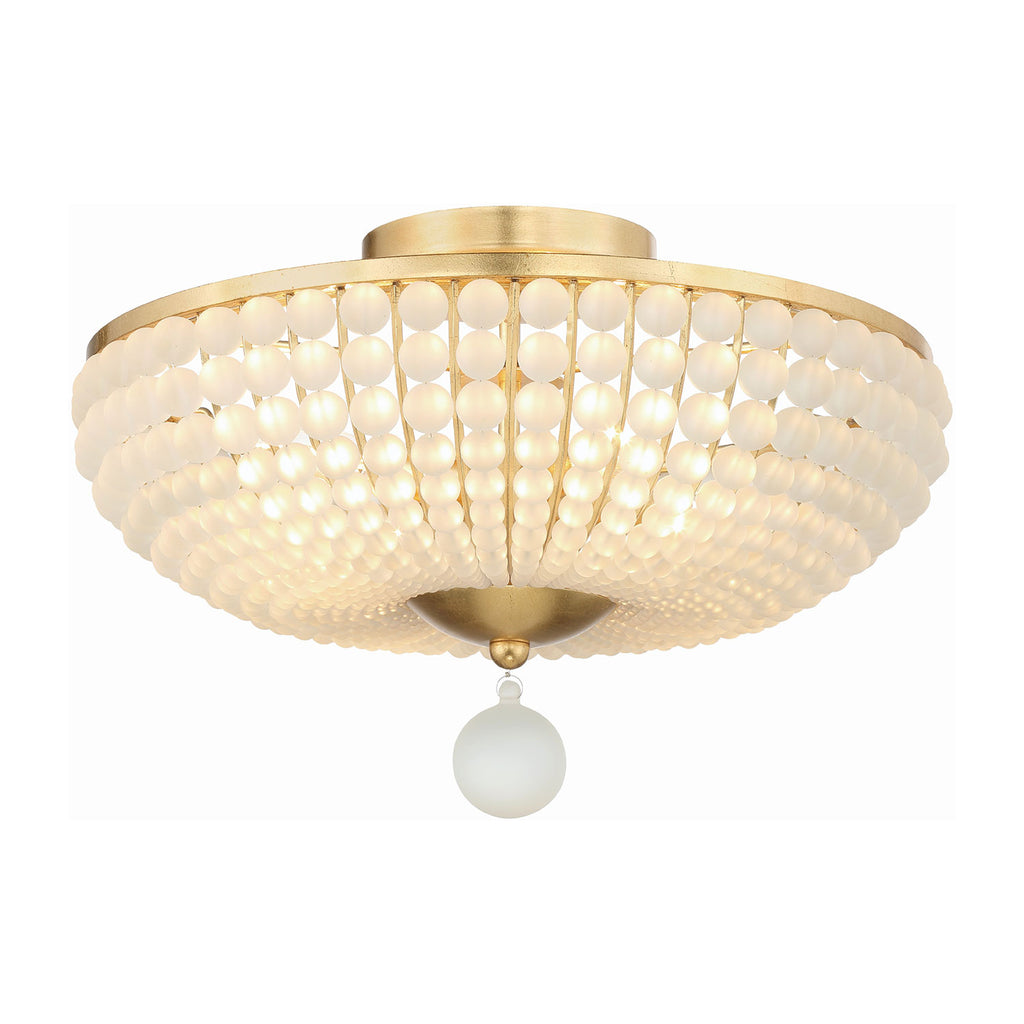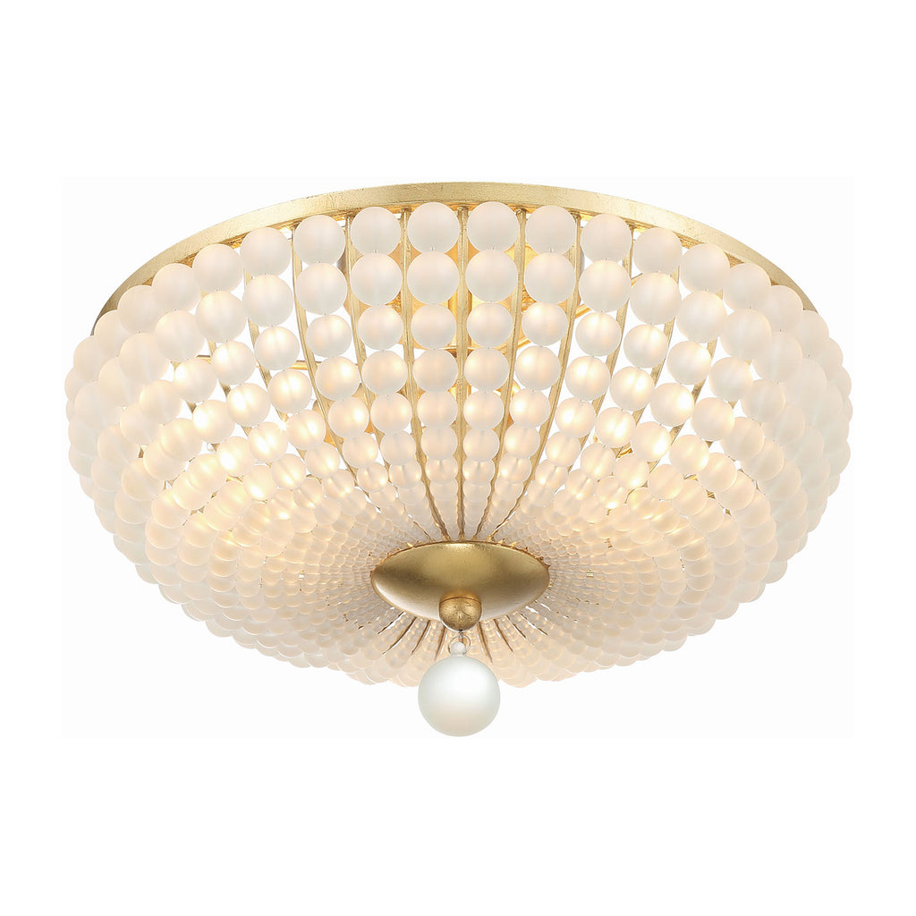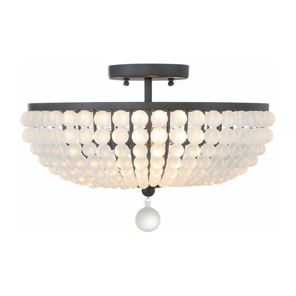 Crystorama is known for its standout lighting, which is exceptional in quality and design. From traditional all-crystal designs to transitional lighting collections, Crystorama offers styles that will match any décor and are always in fashion. Add a touch of modern style to your décor with the Bella frosted glass bead ceiling mount. The metal frame features glass beads sweeping downward and inward, connecting a larger hanging glass ball. This elegant contrast of Matte Black or Antique Gold combined with frosted white glass adds a bold look to your indoor living areas. Bella collection features a versatile transitional design. A marriage of traditional and contemporary equate a classic and timeless design that focuses on simplicity and sophistication. The gold metal mixed with the frosted beads gives it a great chic look. Antique Gold metal finish is a popular choice with homeowners. The finish has a rich color and texture with warm undertones.