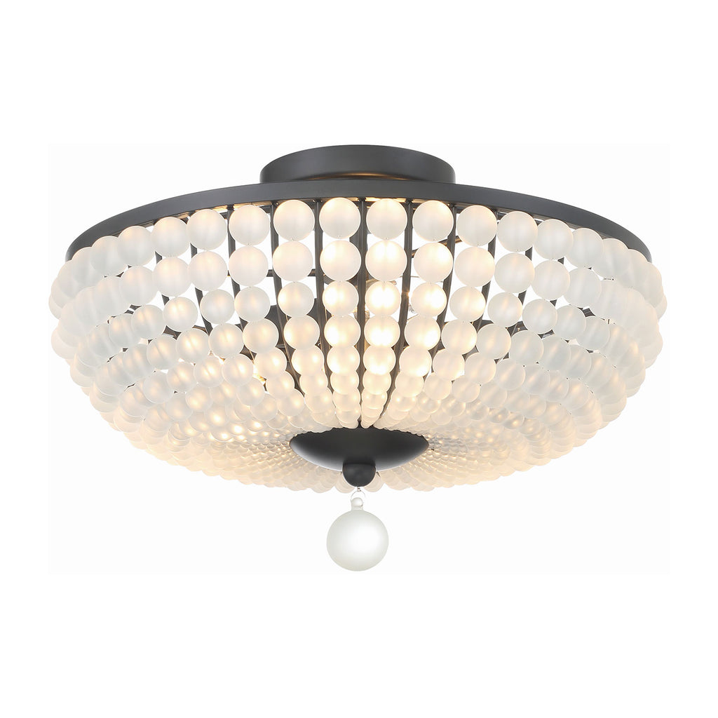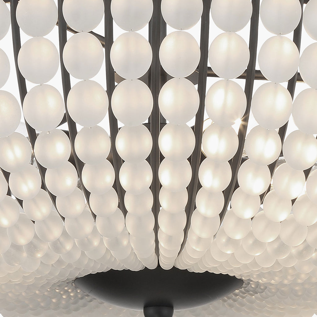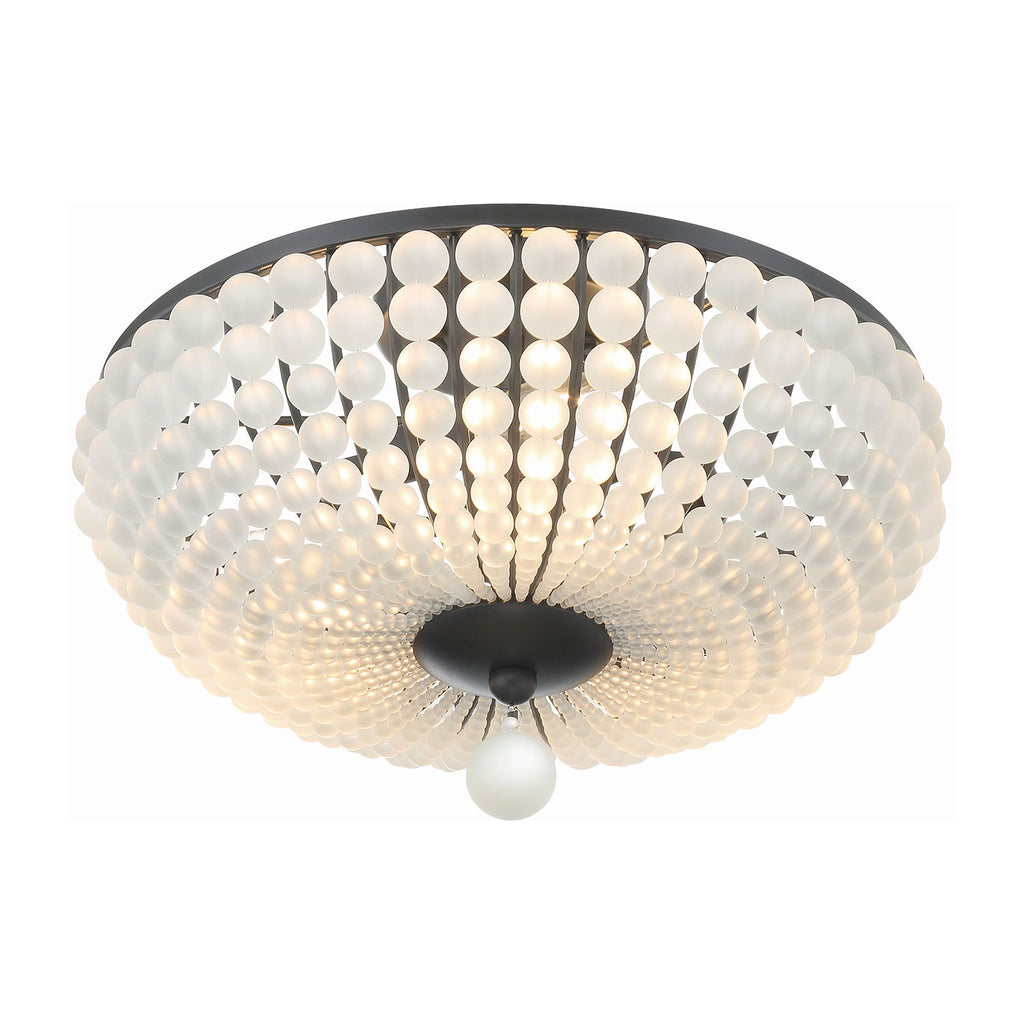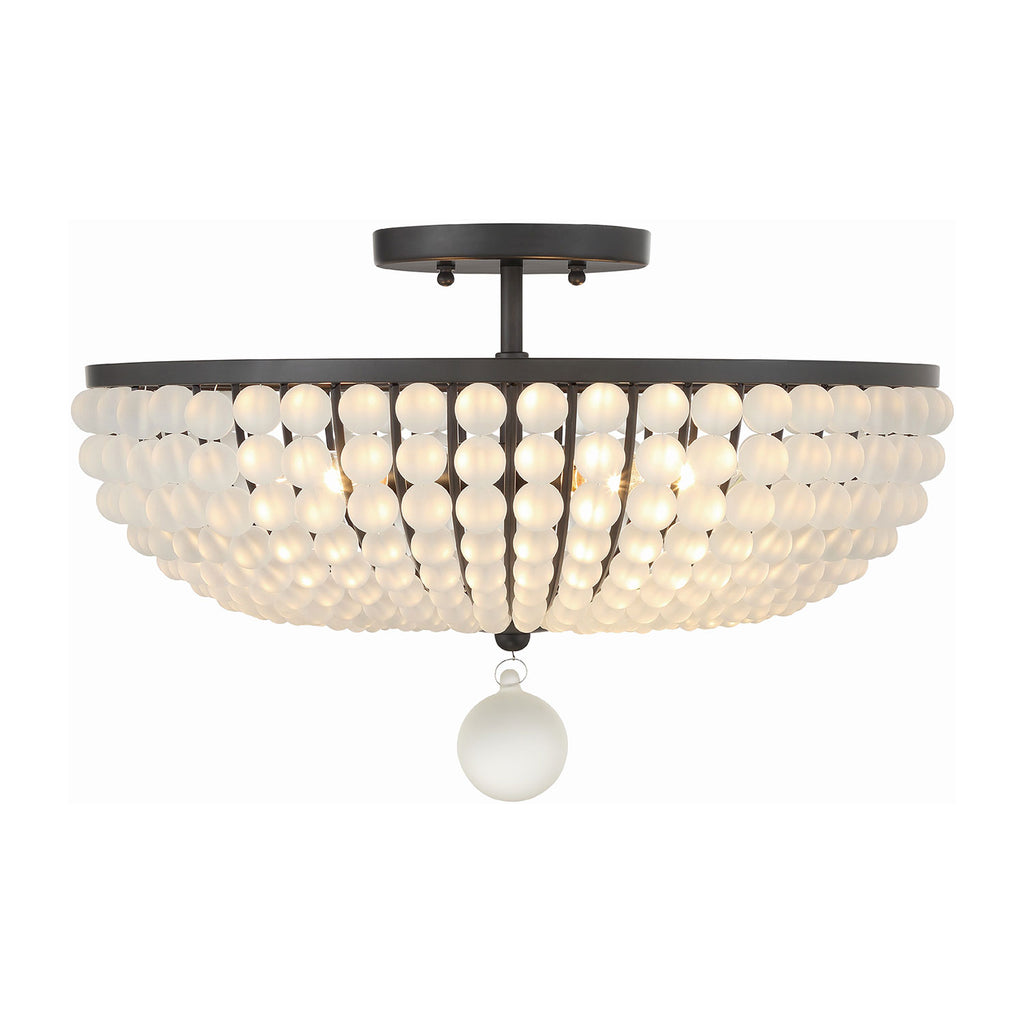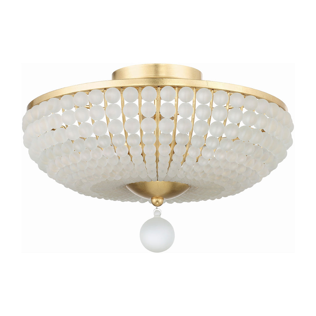 Crystorama is known for its standout lighting, which is exceptional in quality and design. From traditional all-crystal designs to transitional lighting collections, Crystorama offers styles that will match any décor and are always in fashion. Add a touch of modern style to your décor with the Bella frosted glass bead ceiling mount. The metal frame features glass beads sweeping downward and inward, connecting a larger hanging glass ball. This elegant contrast of Matte Black or Antique Gold combined with frosted white glass adds a bold look to your indoor living areas. Bella collection features a versatile transitional design. A marriage of traditional and contemporary equate a classic and timeless design that focuses on simplicity and sophistication. The gold metal mixed with the frosted beads gives it a great chic look. Antique Gold metal finish is a popular choice with homeowners. The finish has a rich color and texture with warm undertones.