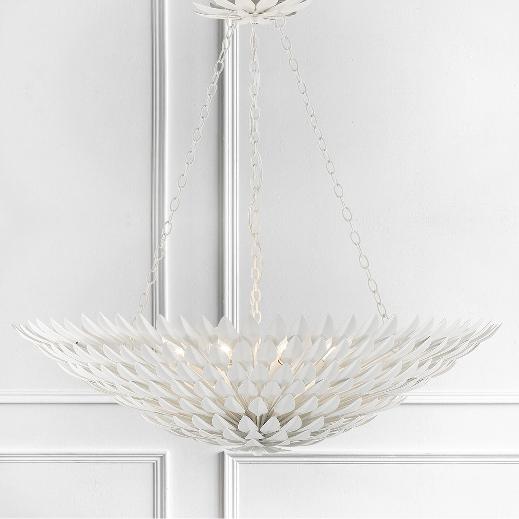 Crystorama is known for its standout lighting, which is exceptional in quality and design. From traditional all-crystal designs to transitional lighting collections, Crystorama offers styles that will match any décor and are always in fashion. Layers of individual wrought iron leaves deliver a stunning, unique and functional light . The tailored elegance of the shimmering metallic florals are perfect for a transitional home though versatile enough to be incorporated into any modern design. While perfect for a bedroom, living area, or kitchen, it can be used anywhere you want to add a bit of glam.