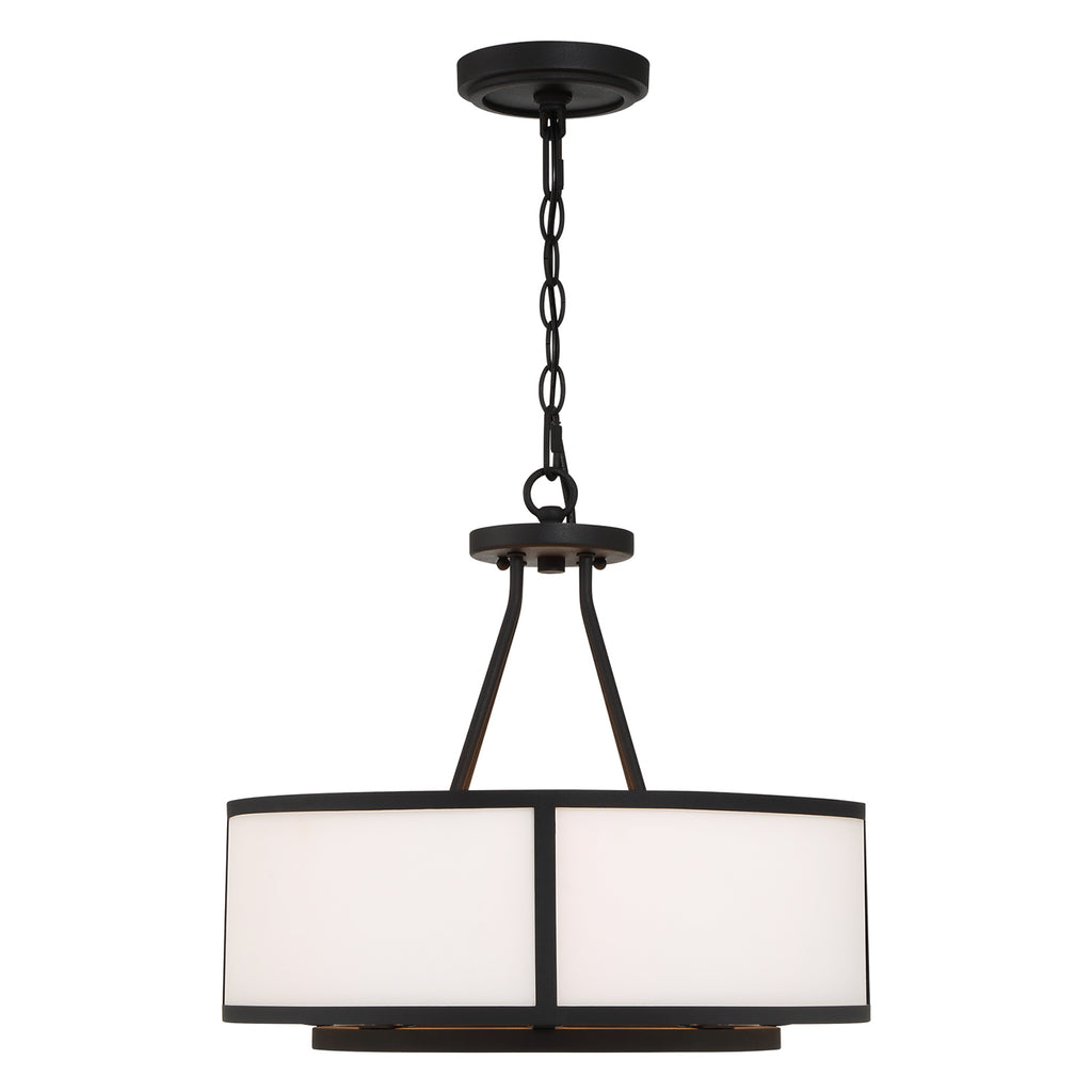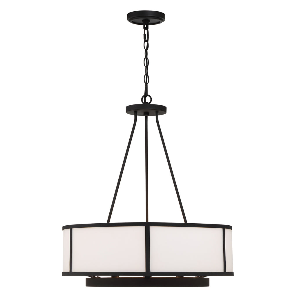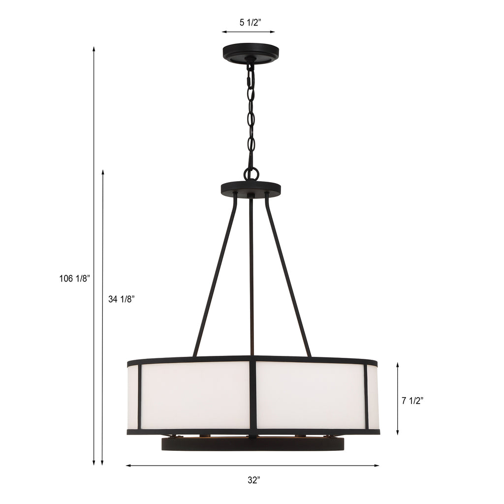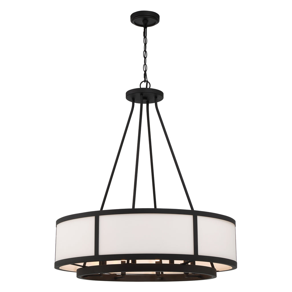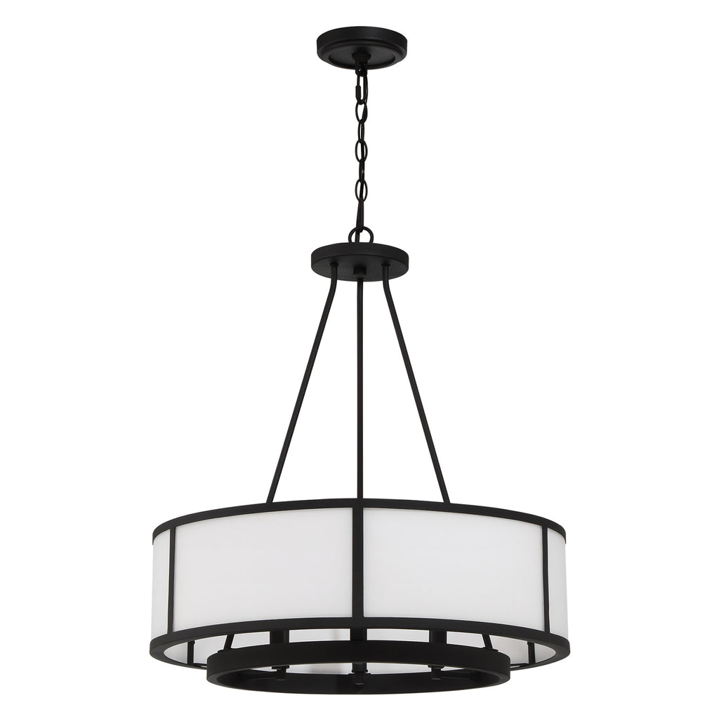 Crystorama is known for its standout lighting, which is exceptional in quality and design. From traditional all-crystal designs to transitional lighting collections, Crystorama offers styles that will match any décor and are always in fashion. Showcasing a classic drum pendant, the Bryant is crafted with a white glass shade and black steel frame. The outer drum surrounds an inner suspension of candelabra sockets. The contrasting materials and bold graphic lines provide a design-driven style and a striking visual accent to many interior settings