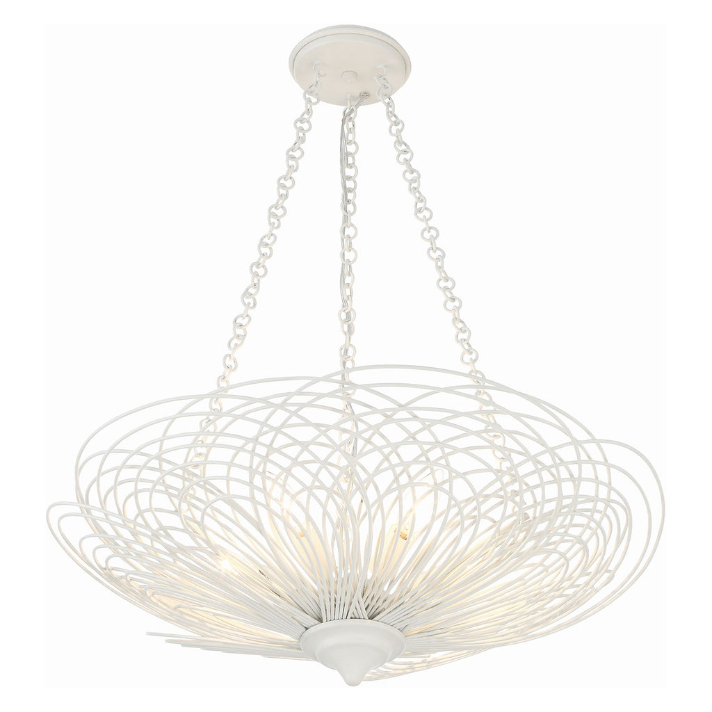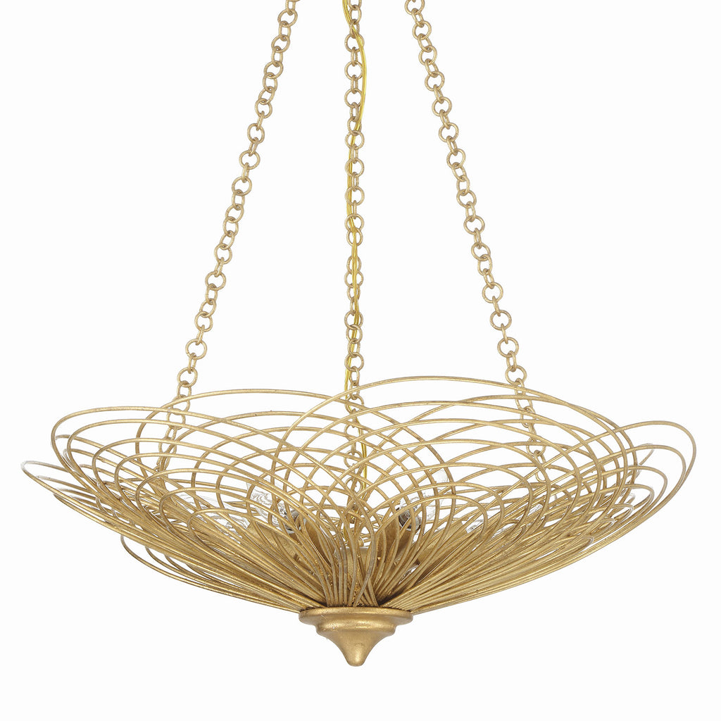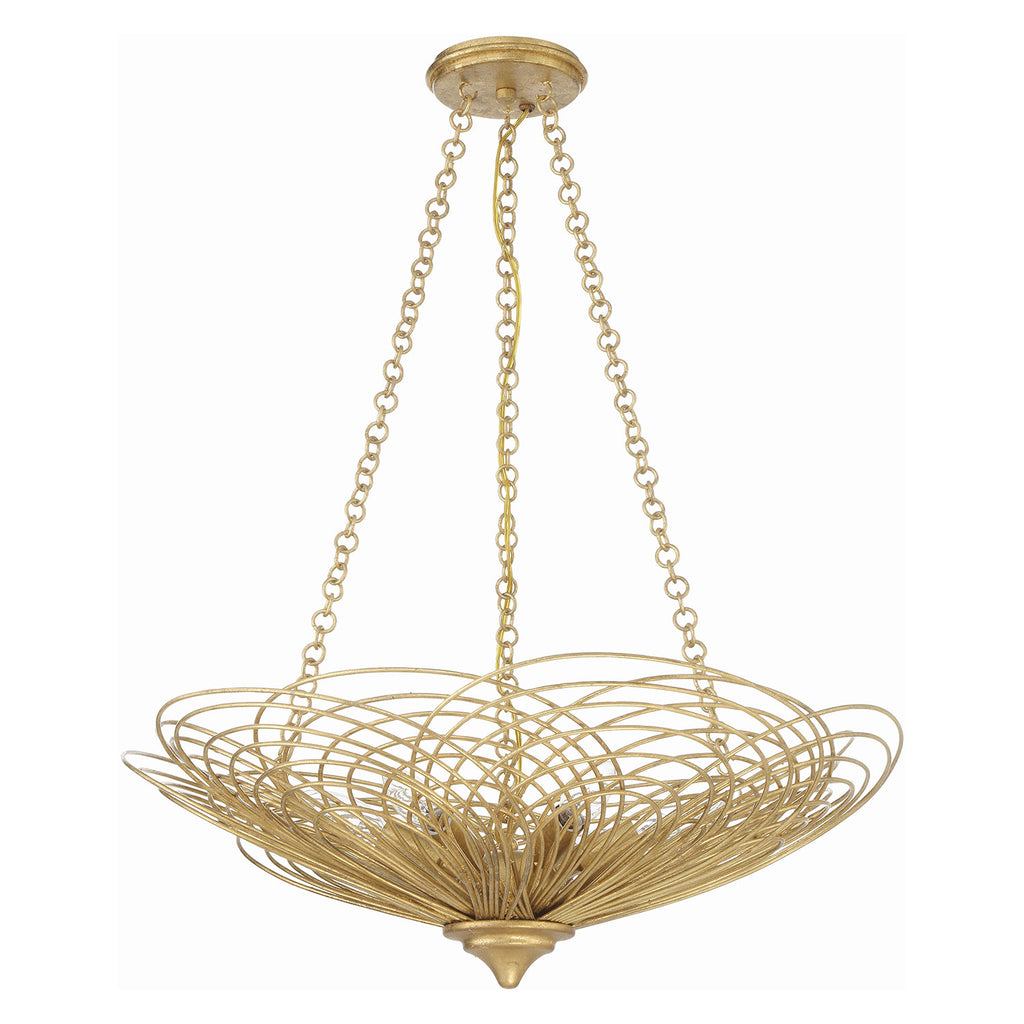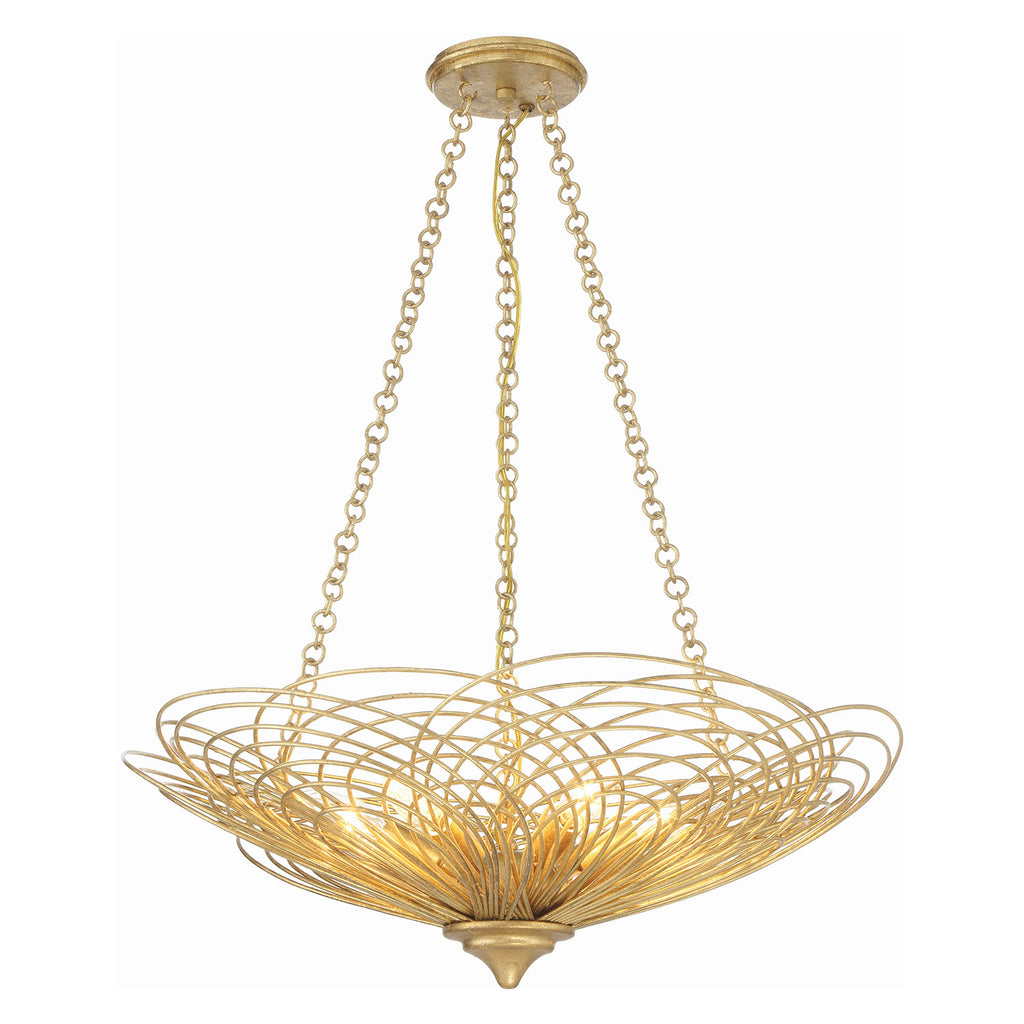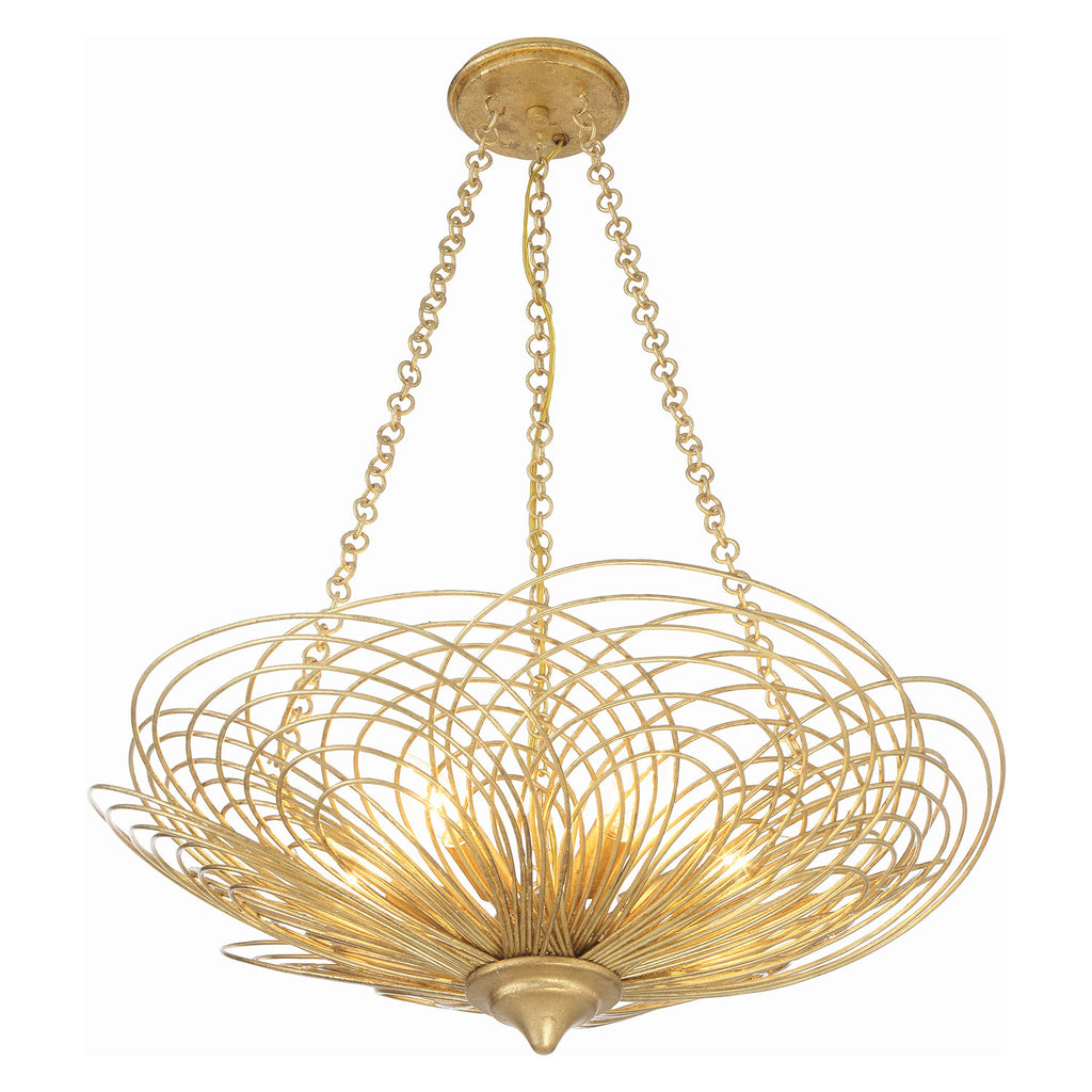 Crystorama is known for its standout lighting, which is exceptional in quality and design. From traditional all-crystal designs to transitional lighting collections, Crystorama offers styles that will match any décor and are always in fashion. A stylish beauty. Derived from the delicate beauty of flower petals, the new Doral Chandelier is a stunning work of art. Its gracefully swirling metal rings create a symmetrical design that elevates any room, reminiscent of a blossoming flower when viewed from below. This fixture's warm finish and organic form effortlessly harmonize with contemporary interiors, infusing a sense of elegance and nature-inspired allure into your living space. Authorized for use in damp, high-humidity interior locations or protected exterior locations.