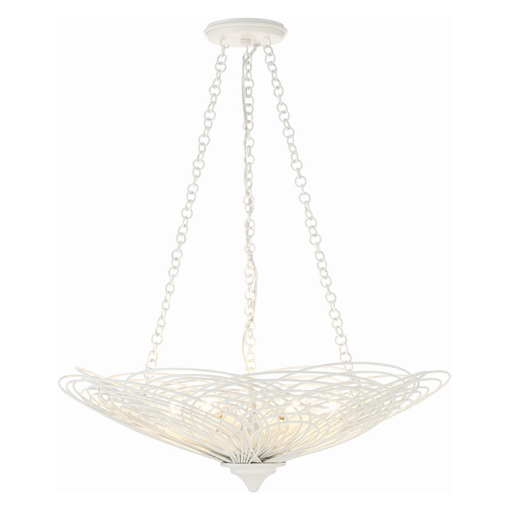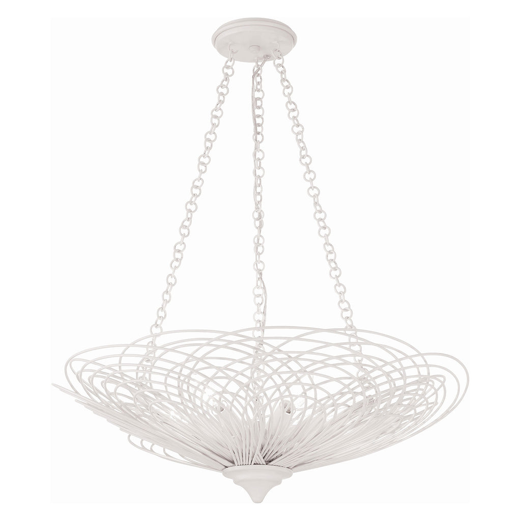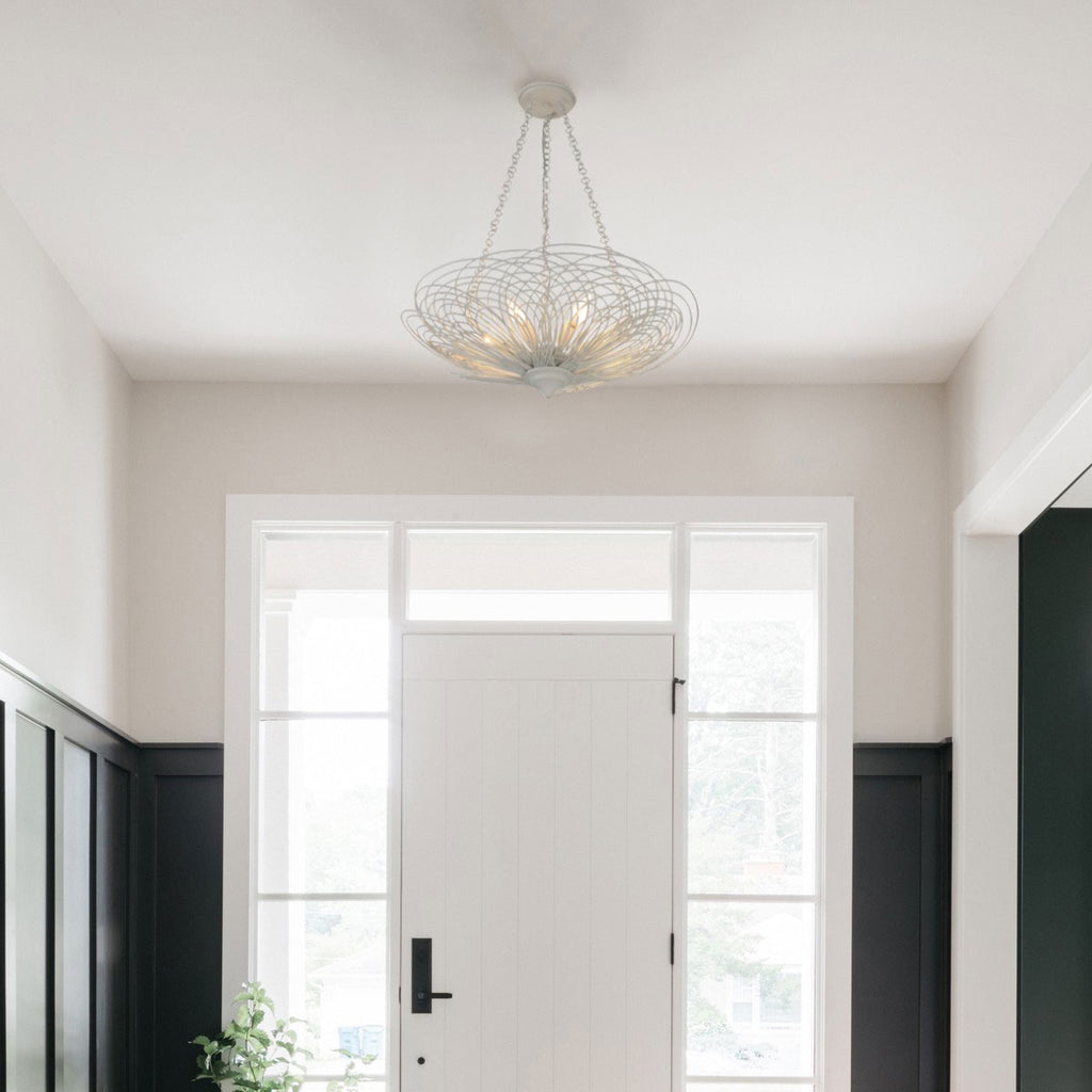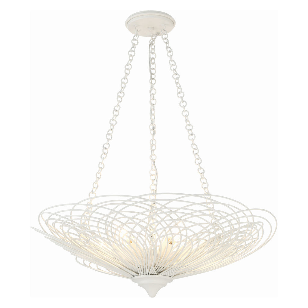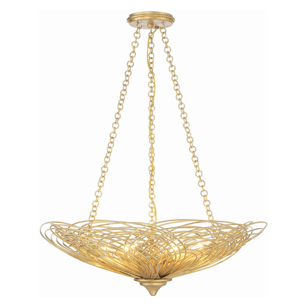 Crystorama is known for its standout lighting, which is exceptional in quality and design. From traditional all-crystal designs to transitional lighting collections, Crystorama offers styles that will match any décor and are always in fashion. A stylish beauty. Derived from the delicate beauty of flower petals, the new Doral Chandelier is a stunning work of art. Its gracefully swirling metal rings create a symmetrical design that elevates any room, reminiscent of a blossoming flower when viewed from below. This fixture's warm finish and organic form effortlessly harmonize with contemporary interiors, infusing a sense of elegance and nature-inspired allure into your living space. Authorized for use in damp, high-humidity interior locations or protected exterior locations.
