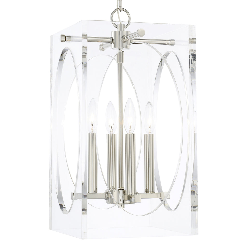 Crystorama is known for its standout lighting, which is exceptional in quality and design. From traditional all-crystal designs to transitional lighting collections, Crystorama offers styles that will match any décor and are always in fashion. Turning today's most popular home decor trends into fashionable lighting, Crystorama's Drake Collection features an innovative fusion of solid chunky lucite and geometric crossbars in a sophisticated, polished nickel finish. Both modern and clean, this boxy fixture is a beauty from all angles.
