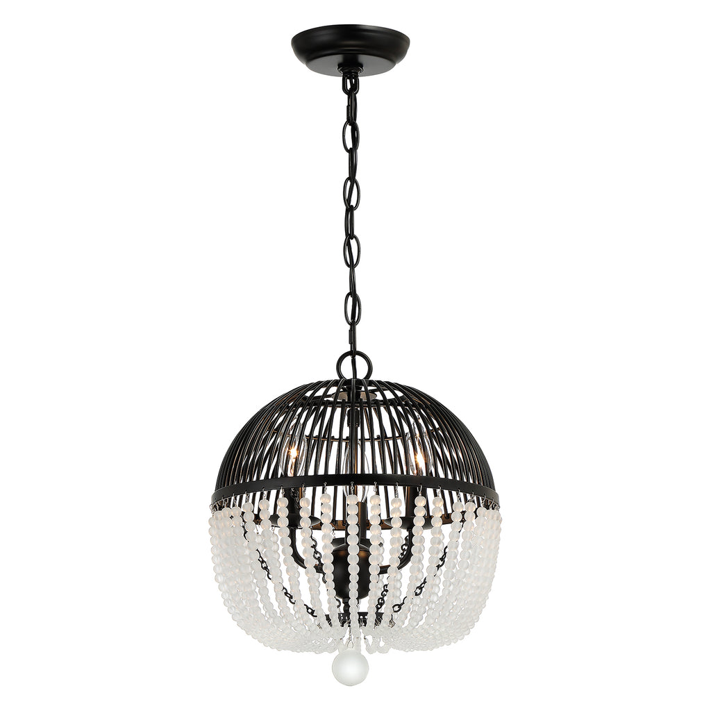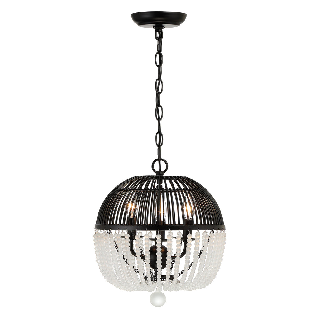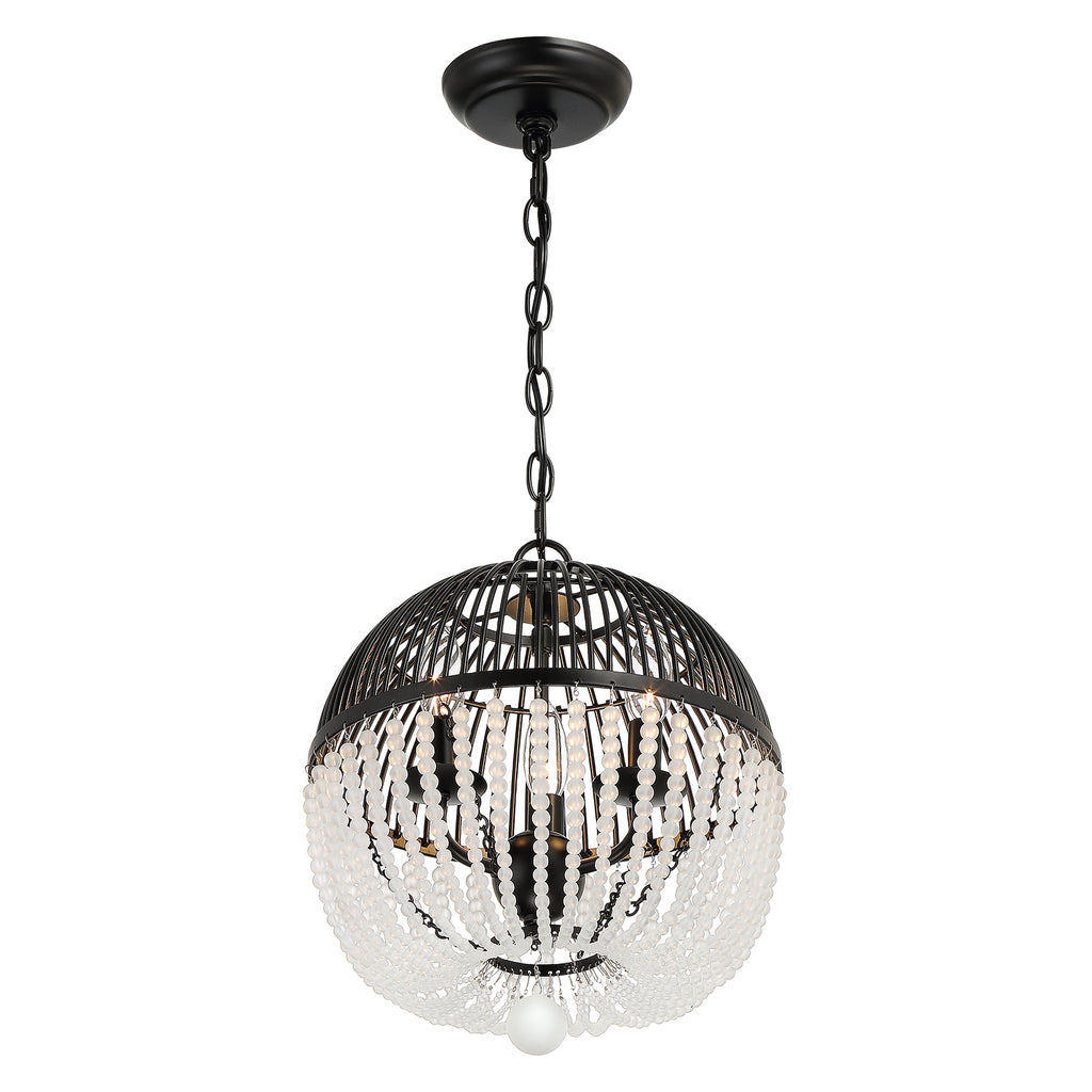 Crystorama is known for its standout lighting, which is exceptional in quality and design. From traditional all-crystal designs to transitional lighting collections, Crystorama offers styles that will match any décor and are always in fashion. Candelabra lights shine through the open metal caged design of the Duval hand painted fixture. The rhythmic frame features hundreds of frosted round glass beads cascading in strands inward to where a single metal ball hangs. This statement piece is perfect to add grandeur to a dining room, hallway or bedroom.