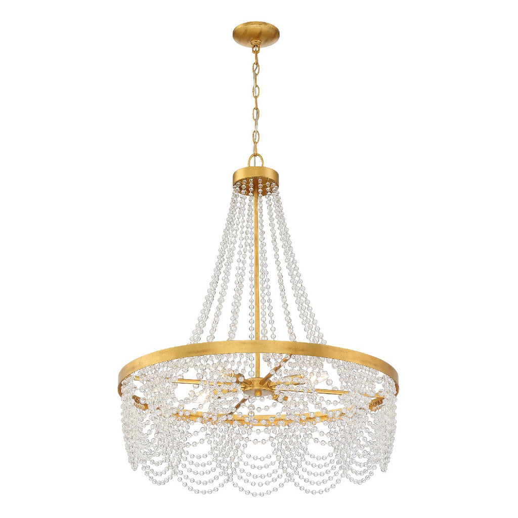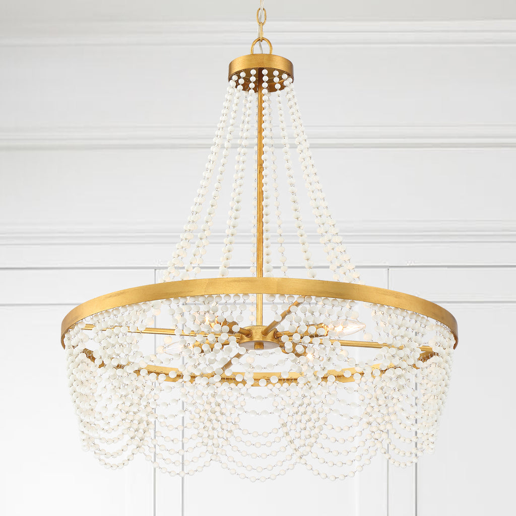 Crystorama is known for its standout lighting, which is exceptional in quality and design. From traditional all-crystal designs to transitional lighting collections, Crystorama offers styles that will match any décor and are always in fashion. The traditional empire shaped chandelier features modern styling with a bohemian flair. With cascading strands of glass beads around its base and a tented top, this chic chandelier will capture the attention in the room with all its eye-catching details.