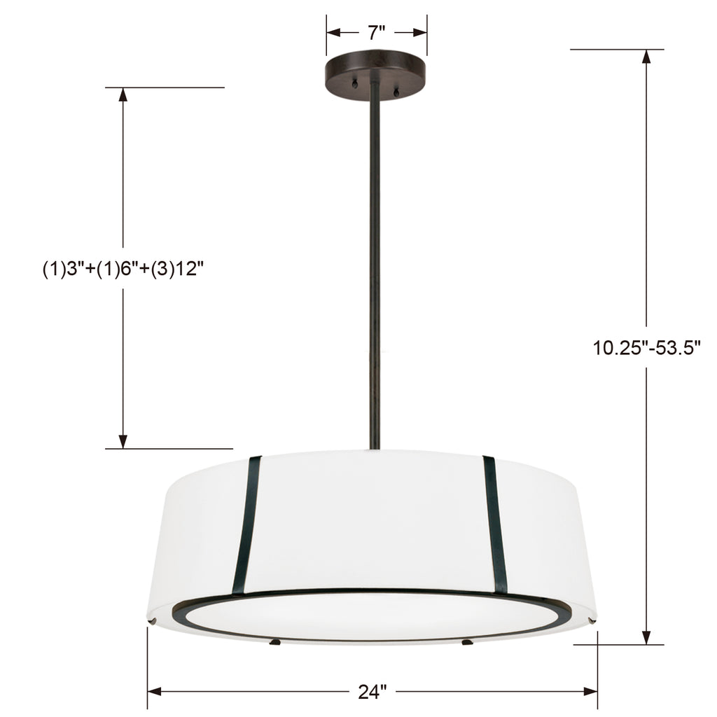 • Shade Top/Bottom: 24in, Shade Height: 6.25in