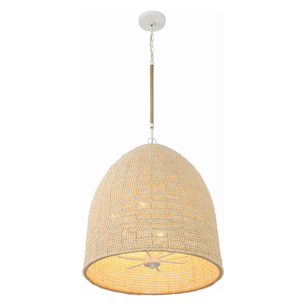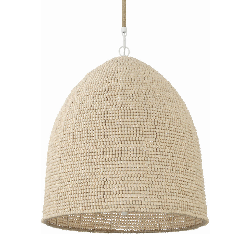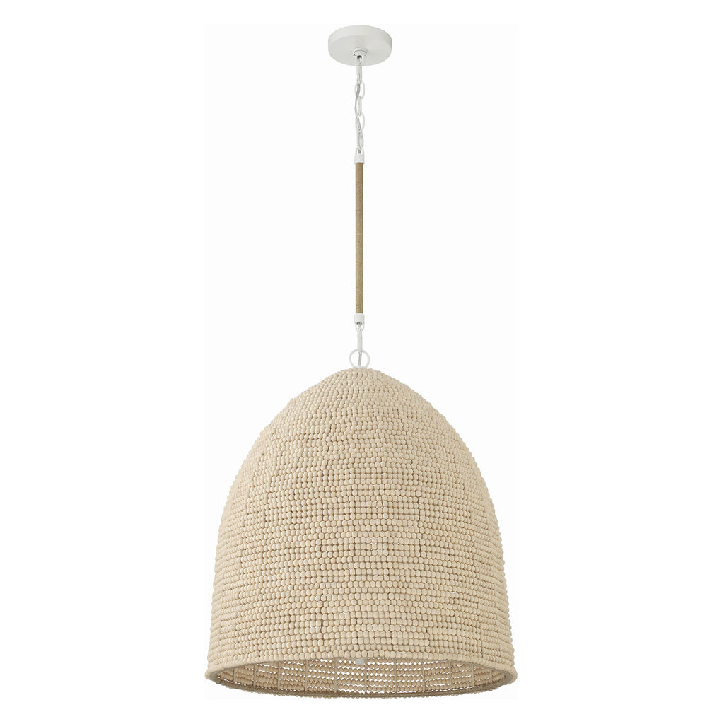 Crystorama is known for its standout lighting, which is exceptional in quality and design. From traditional all-crystal designs to transitional lighting collections, Crystorama offers styles that will match any décor and are always in fashion. A stylish beauty. Bring a down-to-earth style to your home with the Jasper pendant. Hand-strung wooden beads, tightly woven, create a dramatic statement. The hand-wrapped jute rod with a white finish accentuates the pendant's natural allure, making it a perfect addition to your home decor. Whether hung in pairs or showcased alone, this versatile fixture adds a touch of coastal, modern, rustic, or casual charm. Authorized for use in damp, high-humidity interior locations or protected exterior locations.
