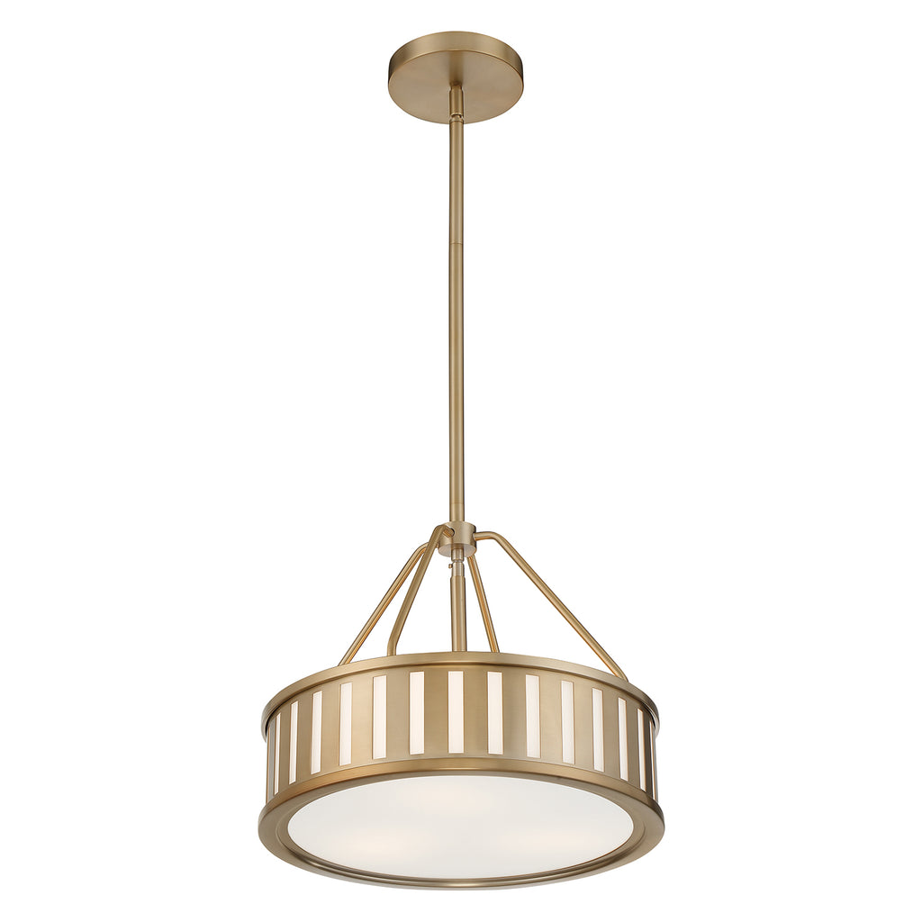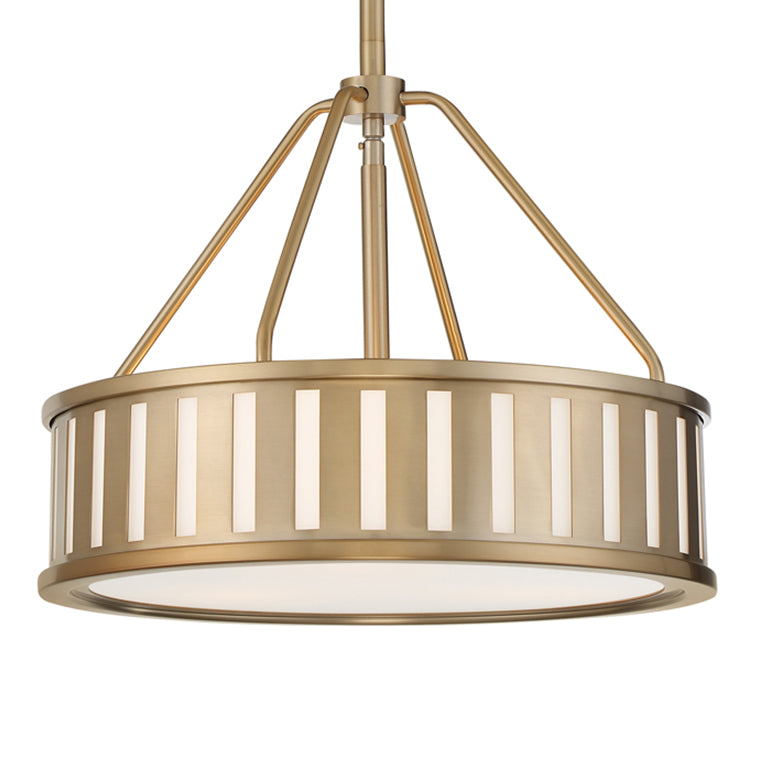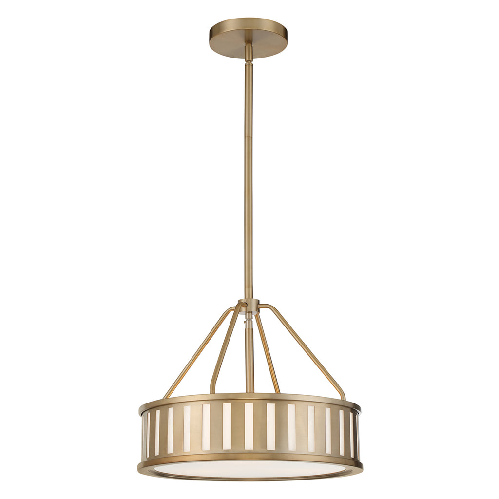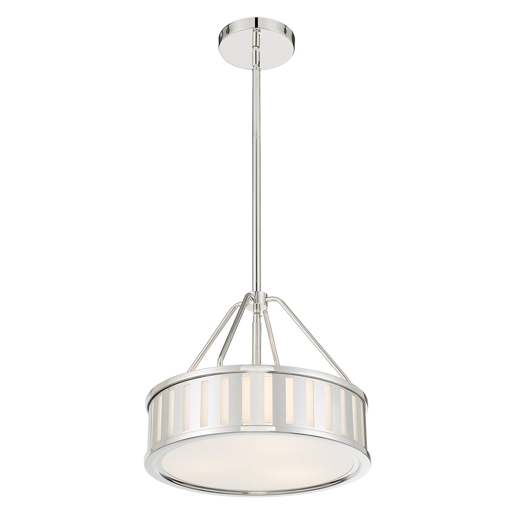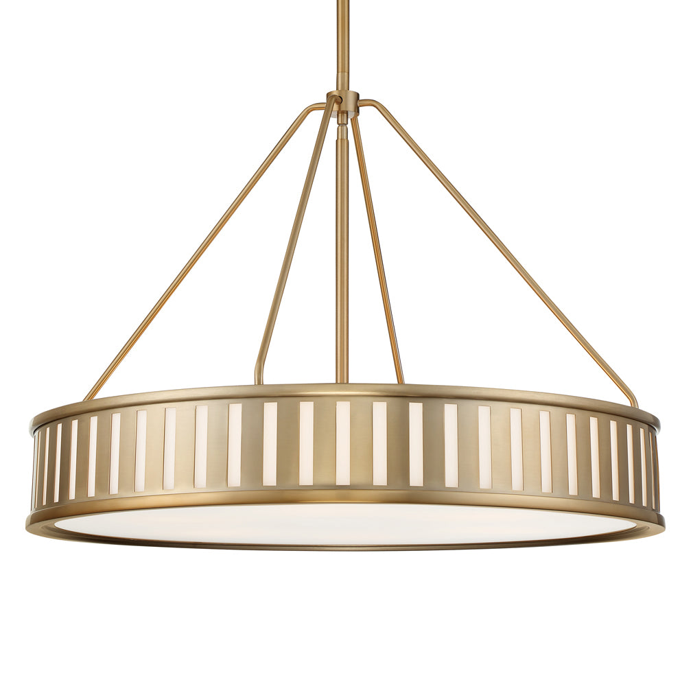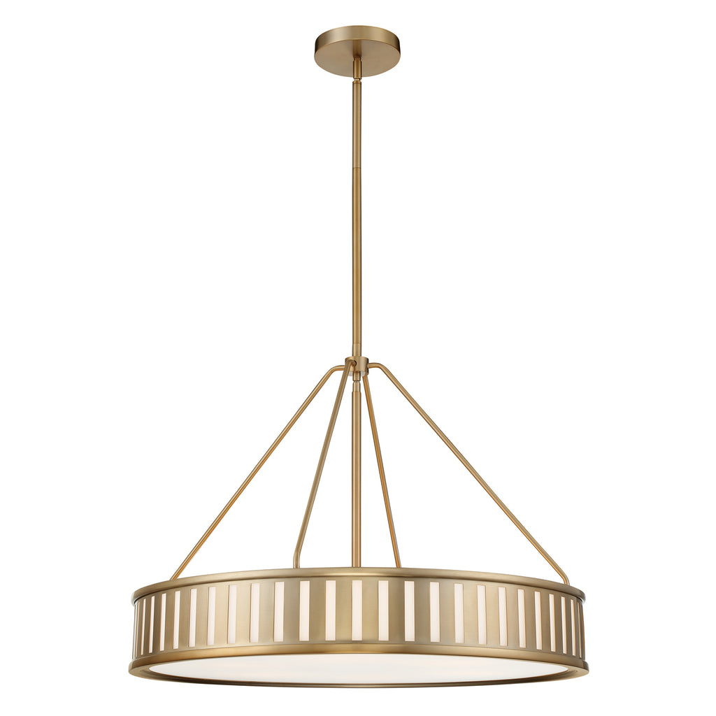 Crystorama is known for its standout lighting, which is exceptional in quality and design. From traditional all-crystal designs to transitional lighting collections, Crystorama offers styles that will match any décor and are always in fashion. The contemporary Kendal collection makes a statement with its graphic uniform pattern. Its metal frame surrounds white glass in this elegant drum-shaped pendant. The high contrast of matte gold or polished nickel against white glass is a great way to add a touch of drama to a room.