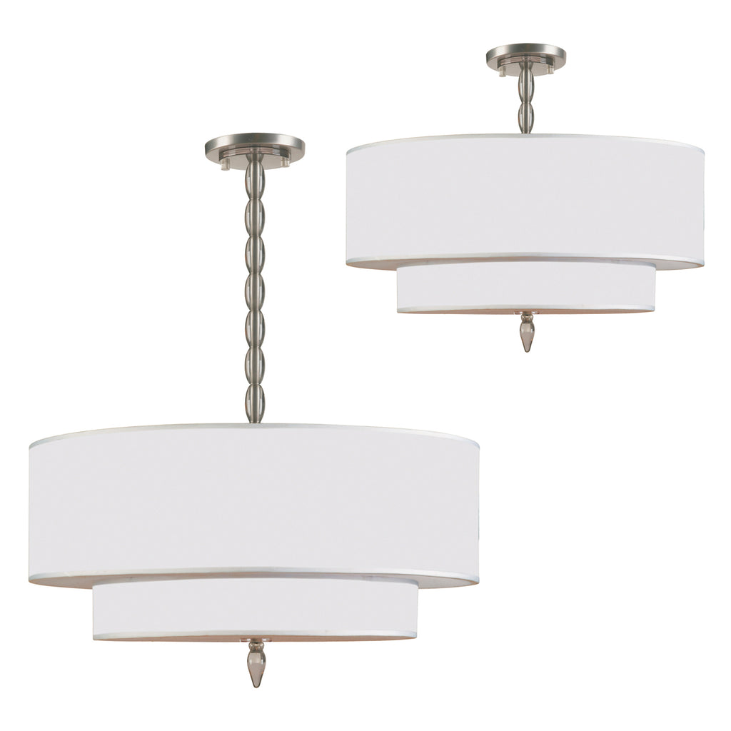 • Finish: Antique Brass with Golden Drum shade or Satin Nickel with White Drum shade