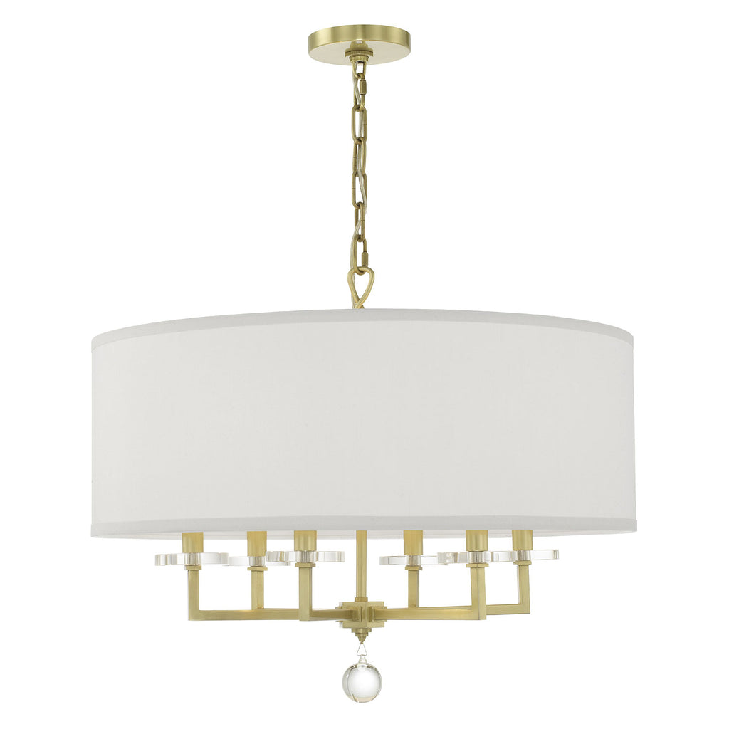 Crystorama is known for its standout lighting, which is exceptional in quality and design. From traditional all-crystal designs to transitional lighting collections, Crystorama offers styles that will match any décor and are always in fashion. The Paxton collection combines geometrically arranged chunky glass bobeches with a frame of super-sleek, tapered crystal column ending with a single hanging glass ball. The delicate lines of the shapely frame, combined with the precisely balanced arms and simple, tailored shade, create a clean, transitional feeling with a distinct, mid-century modern flair. Stylish, modern and minimal, Paxton brings luxurious appeal to a variety of interior spaces. Paxton collection features a versatile modern / contemporary design. A merging of design utilizing minimalist styling and clean lines that add visual appeal to a space. Each piece is dressed with glass accents for a touch of glam. Aged Brass metal finish is treated to look aged and have a rich hue. This shade adds a luxurious touch to any room and is perfect for modern and contemporary settings.
