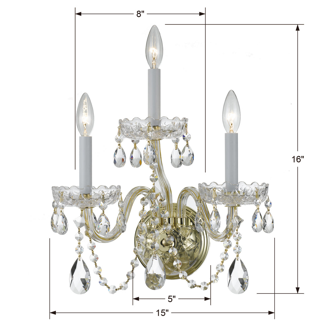 Crystorama Traditional Crystal 1033 3-Light Wall Sconce