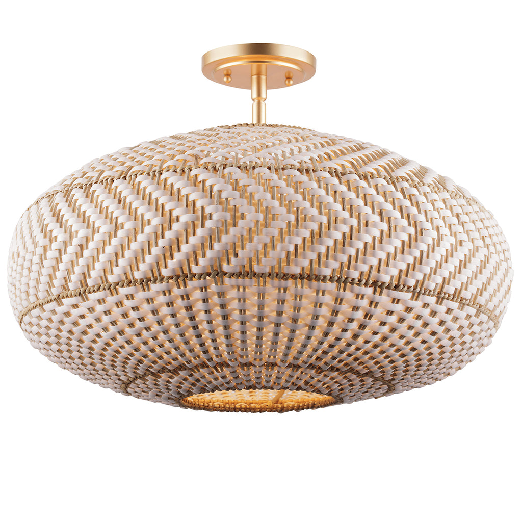 The Zanzibar Collection is an embodiment of laid-back luxe and thoughtful simplicity. By marrying the natural textures of natural rattan with white lanyard, the fixture introduces a striking two-tone color palette and soft gold finish that instantly brings comfort and style to a living space Handcrafted with precision, the intricate weave introduces texture and depth to your décor. Whether suspended over a breakfast nook or in pairs above a kitchen island, the Zanzibar Pendant exudes an earthy, elegant charm that brings an artisanal touch to your decor.