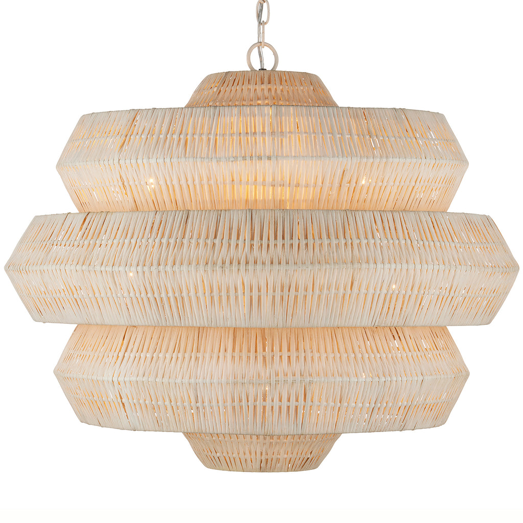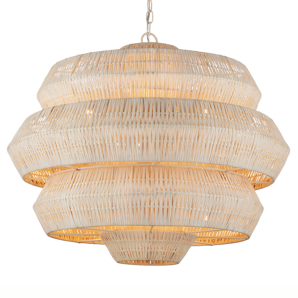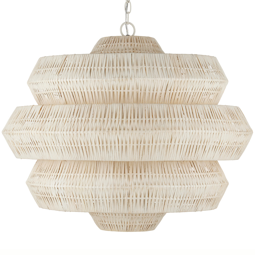 Painstakingly woven by artisans who use traditional techniques, the Currey & Co Antibes Medium White Chandelier is a marriage of artistry and high-quality construction. Natural bleached rattan forms the body of this geometric chandelier supported by a wrought iron frame in a snow-white finish. Though the Antibes will feel right at home in a coastal aesthetic, it is also perfect for modern interiors.