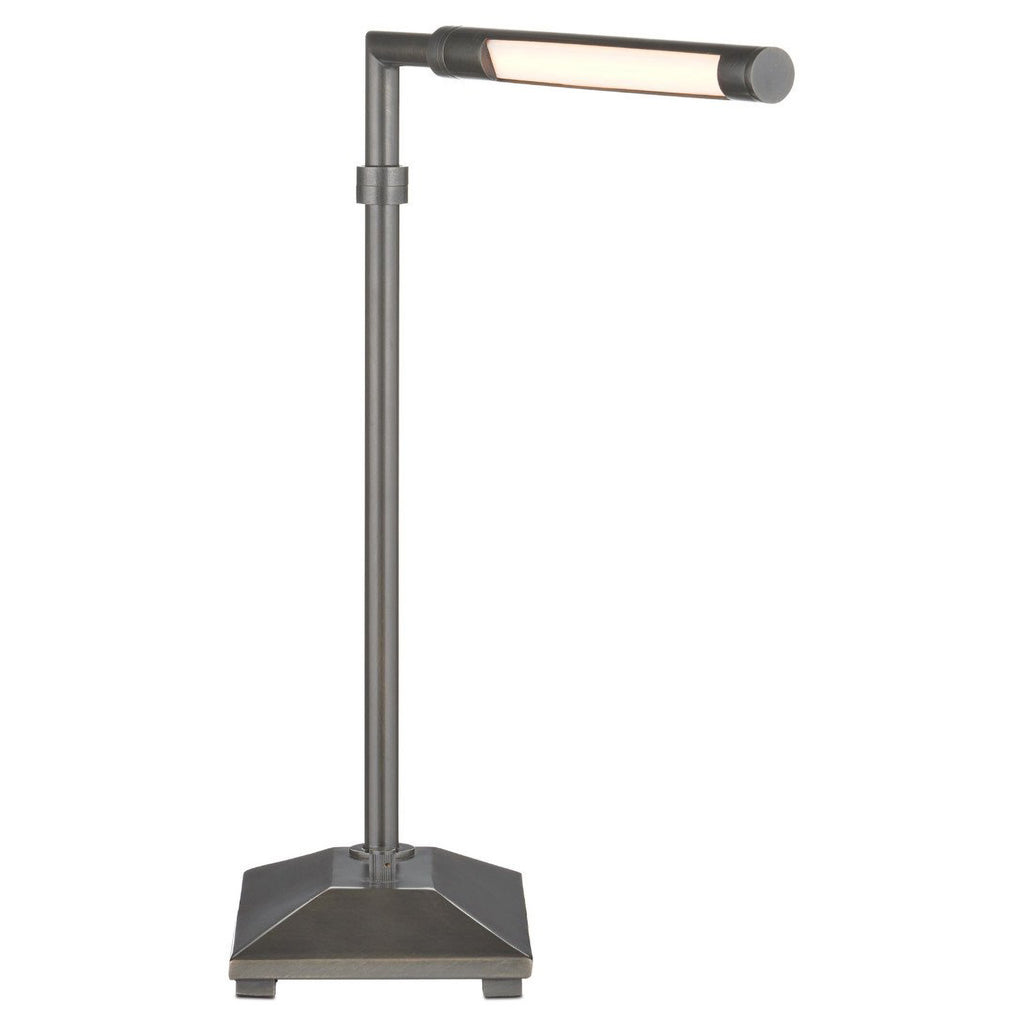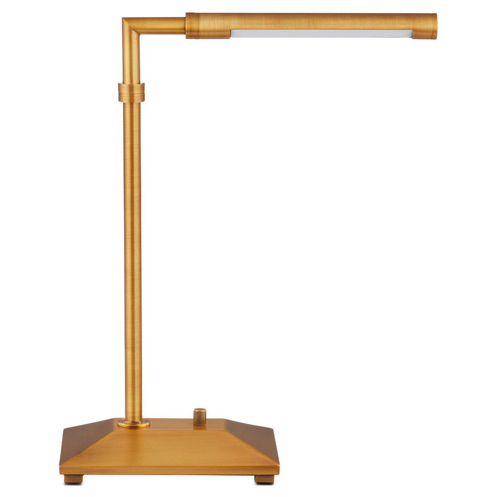 The Autrand Desk Lamp is a nimble fixture that focuses illumination wherever it is needed most, as it swivels from side to side and the tubular shade on the top arm can be maneuvered to cast light up, down, or right to left. Made of metal in an antique brass or oil rubbed bronze finish, the simple lines of this desk lamp make it great for any number of interior styles, including contemporary. The gold or oil rubbed bronze lamp has a dimmer switch and is lit with integrated LED technology.