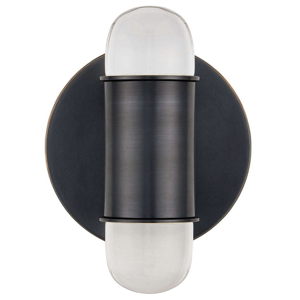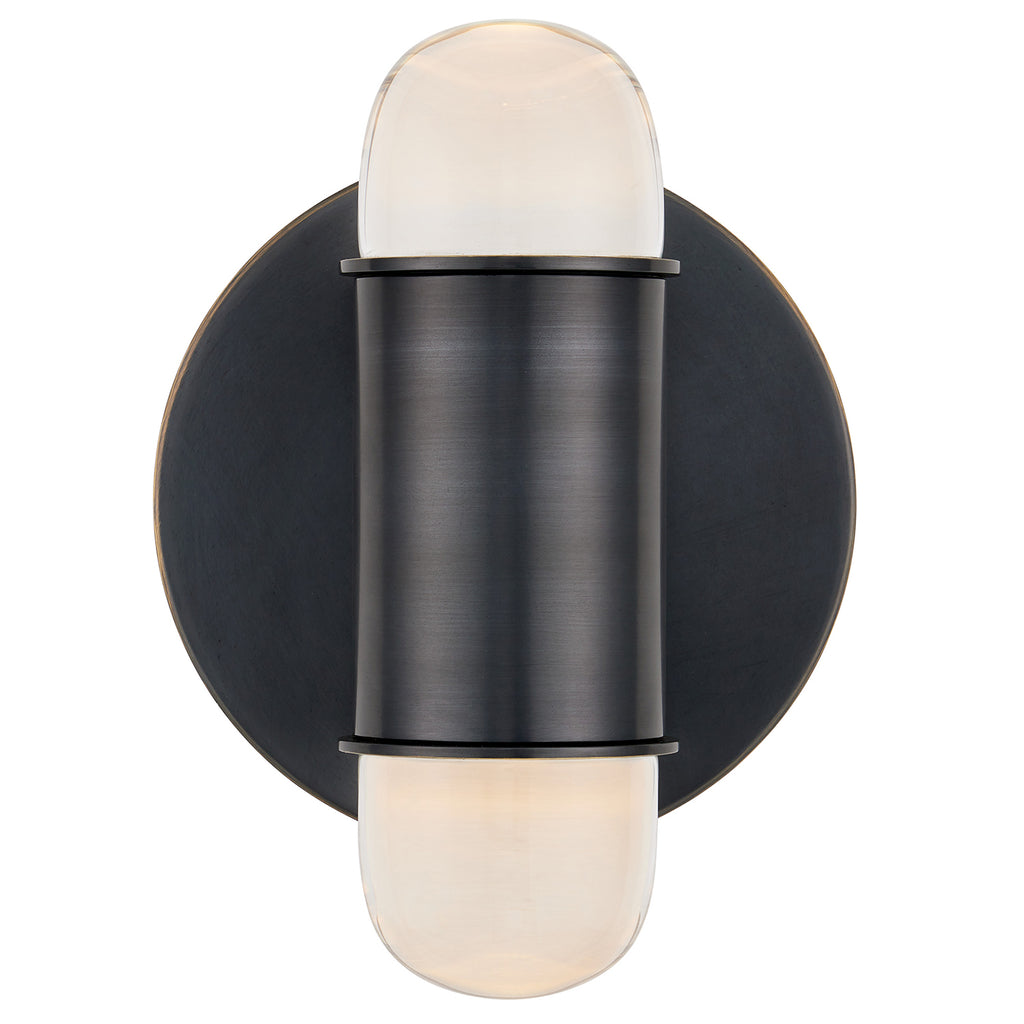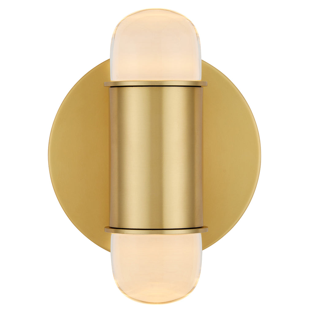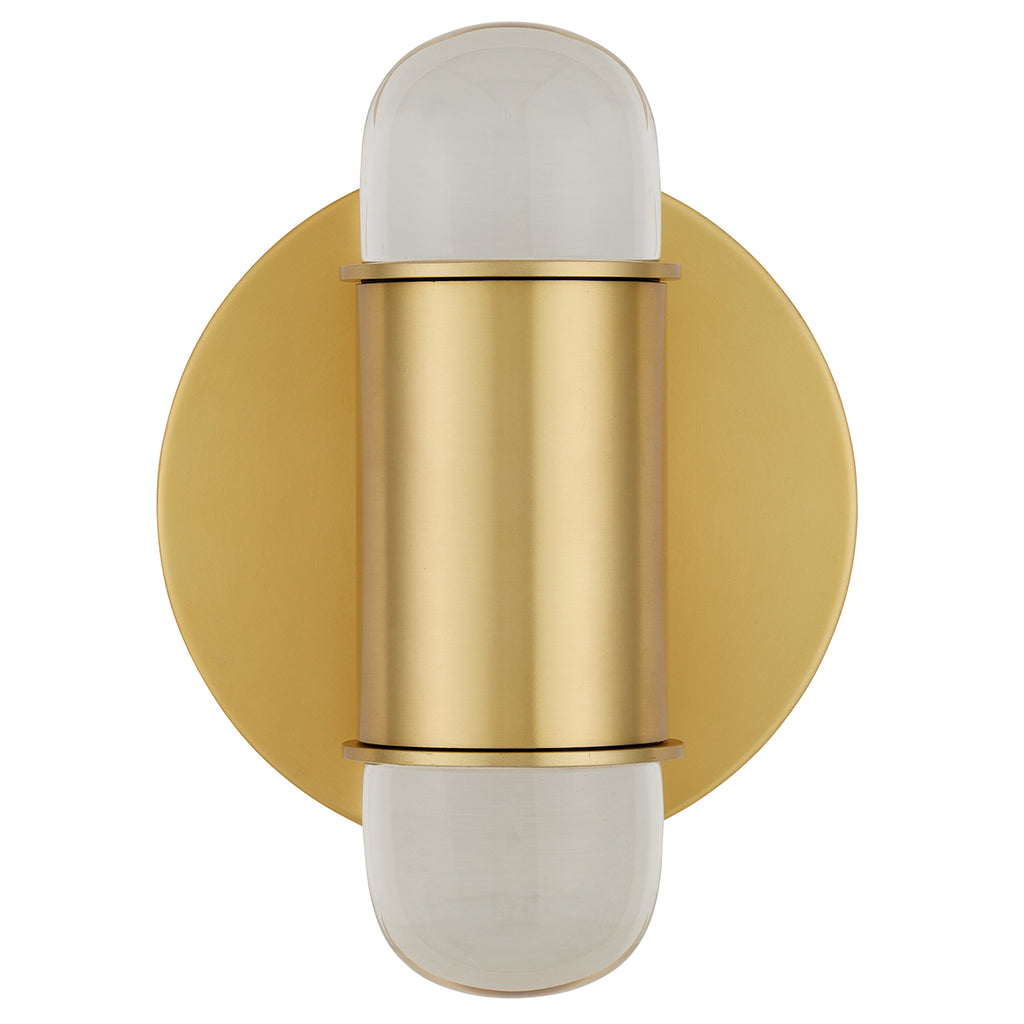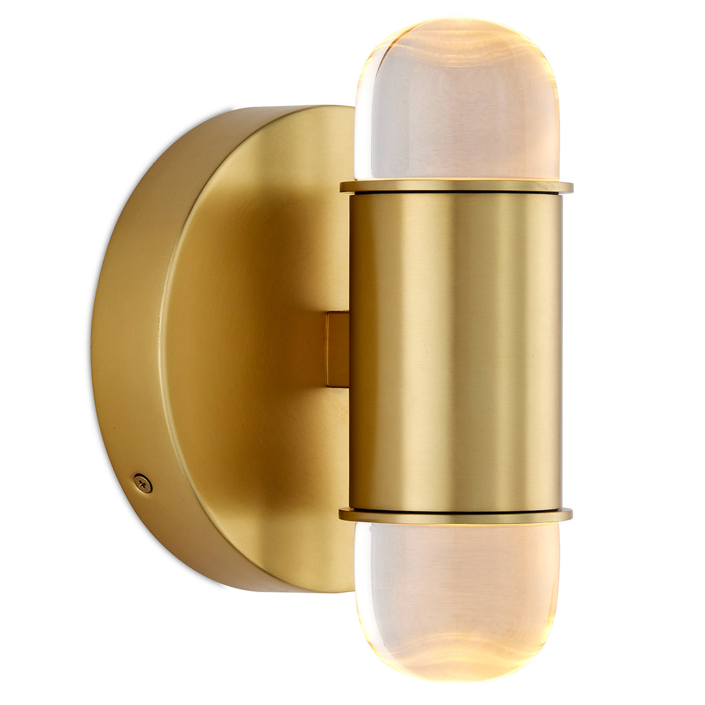 The Currey & Co Capsule Wall Sconce is a clever design by Clarence Mallari that can be hung with the solid optic crystal shades facing vertically or horizontally. The gold sconce is also technologically savvy, as it is fitted with an integrated LED. The brushed-brass metal will gleam just as brightly as the lightly frosted glass will when the lights are switched on. The sconce is rated for damp locations.