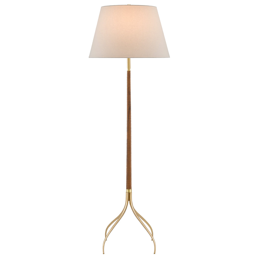 Tom Caldwell calls his design for the Currey & Company Circus Floor Lamp graceful, as it features beautiful curved solid brass legs and turnings, as well as a carved, gracefully tapered wood column. The wood floor lamp is a great material story as well as being elegantly interpreted, he adds.