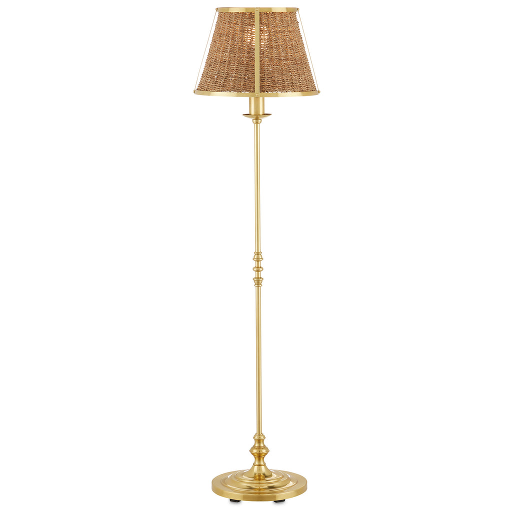 The Currey & Co Deauville Floor Lamp was created by Suzanne Duin, who founded the Houston shop and design studio Maison Maison, and is known for a keen eye in sourcing authentic French antiques and home accessories from around the globe. Each piece in her line of woven light fixtures is handmade by artisans in Southeast Asia; the Deauville an example in natural seagrass and steel in a polished brass finish. This tailored floor lamp trimmed in gold brings both texture and French flair.