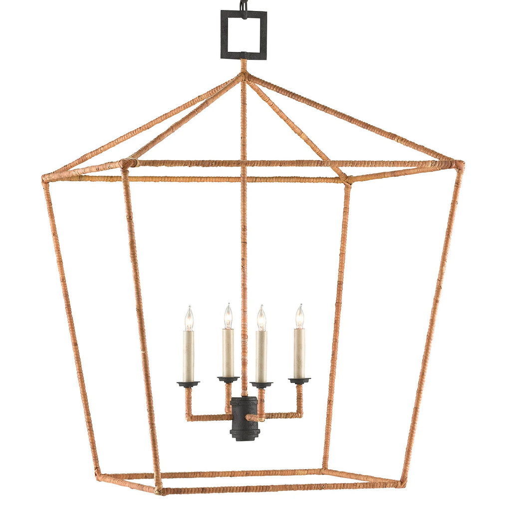 The Currey & Company Denison Rattan Lantern is a hammered wrought-iron fixture in a Molé black finish that is wrapped in rattan. The classic lantern shape has stood the test of time to make it one of our most popular offerings. A design element of note is the square that fastens the lantern to the chain.