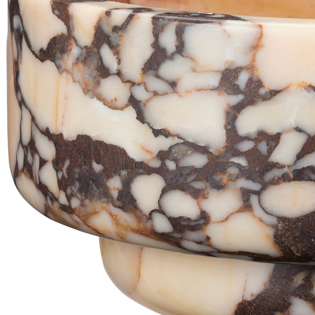 The Currey & Co Digby Bowl illustrates how artful nature can be. Made of Purple Breccia marble, the complex patterning of the stone makes this a natural focal point for a vignette, or a stunning specimen for holding fruits or vegetables, or left to stand on its own. The peach and purple decorative bowl will stand out whatever its purpose will be.