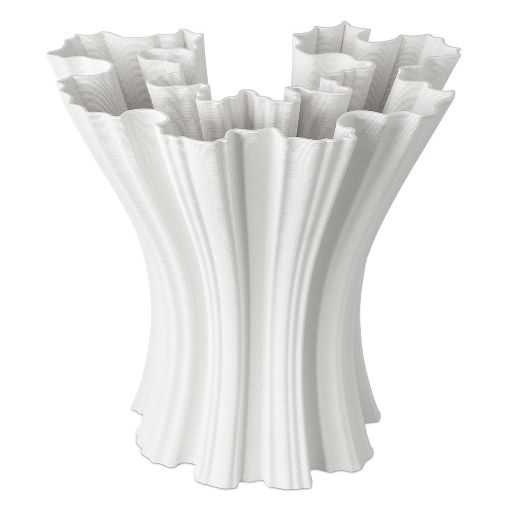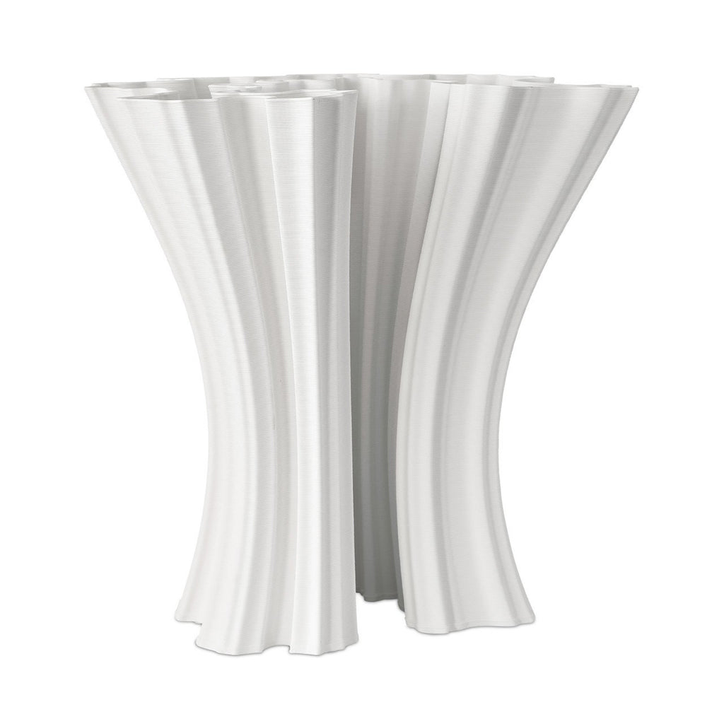 The Currey & Co Godet White Vase is a technological feat. The deep furrows that wrinkle around the form to create waves of movement are achieved with such a uniformity they can only be machine-made. The most surprising thing about this handsome vessel is that it is made of 3D-printed porcelain, an ancient material you might not expect to be so amenable to such a modern process.
