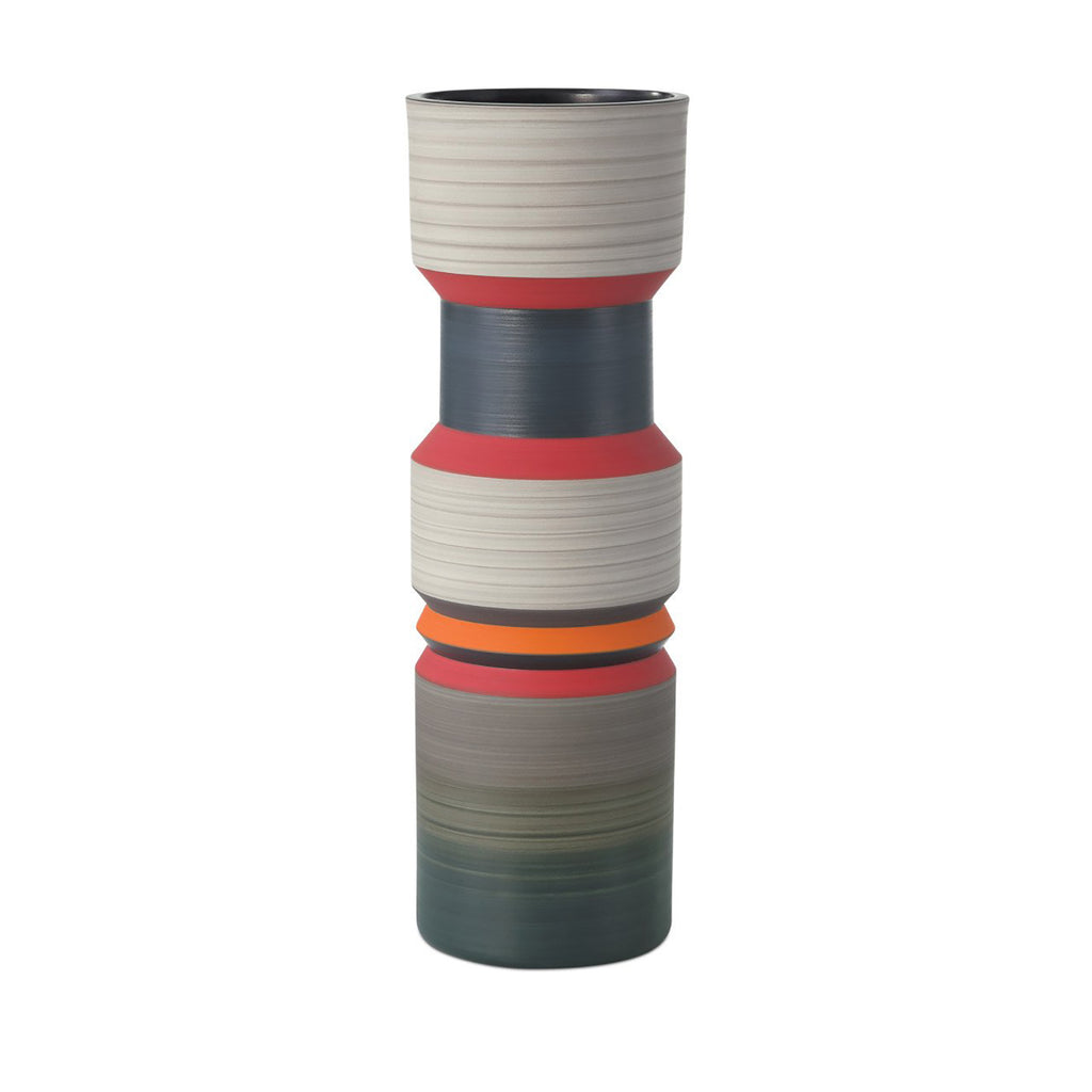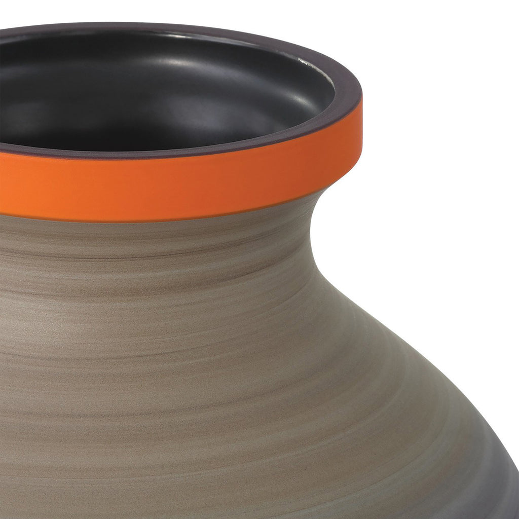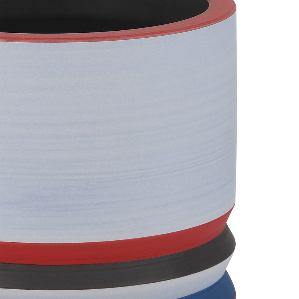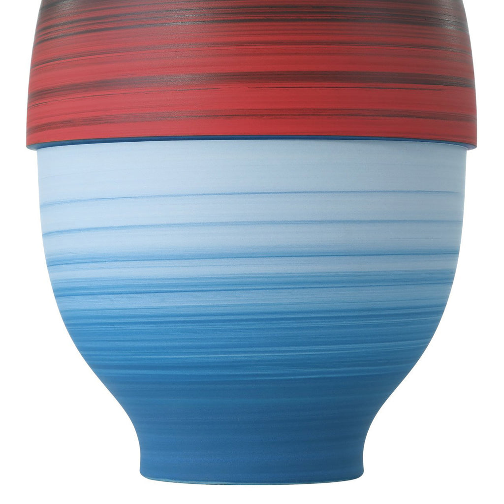 The Currey & Co Happy 80’s Black, Blue, Red & Orange Vase Set is a throwback to the decade when bold, vibrant, and eclectic ruled the stylistic spectrum—from interior design to fashion. Made of porcelain, the glazes on the exteriors of these vessels will vary because they are applied while the vases are spinning. This brings the two works of art a textural feel. The insides of the vases are covered in a black glaze, and the shapes of the vases reflect the nuances of the decade after which they are named.