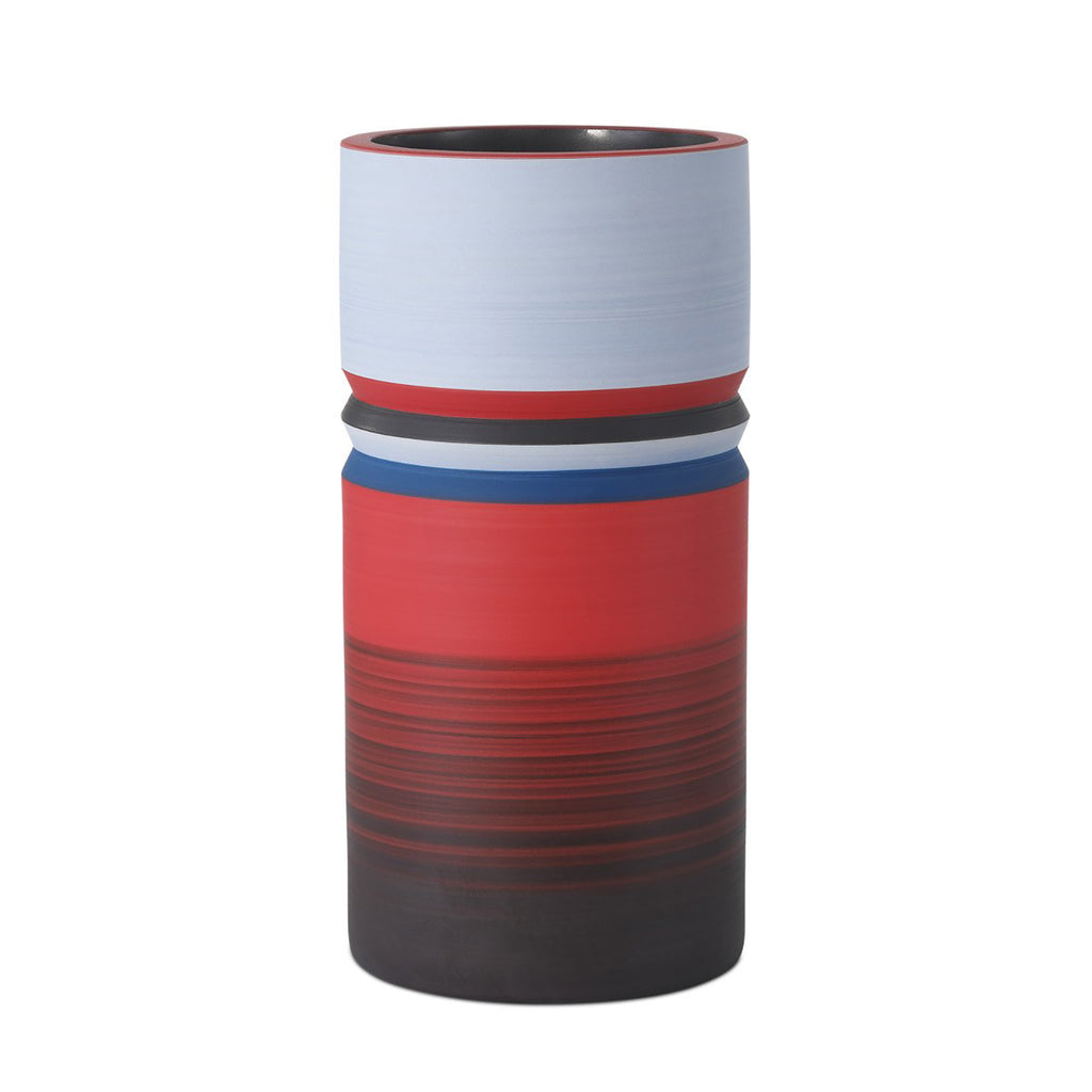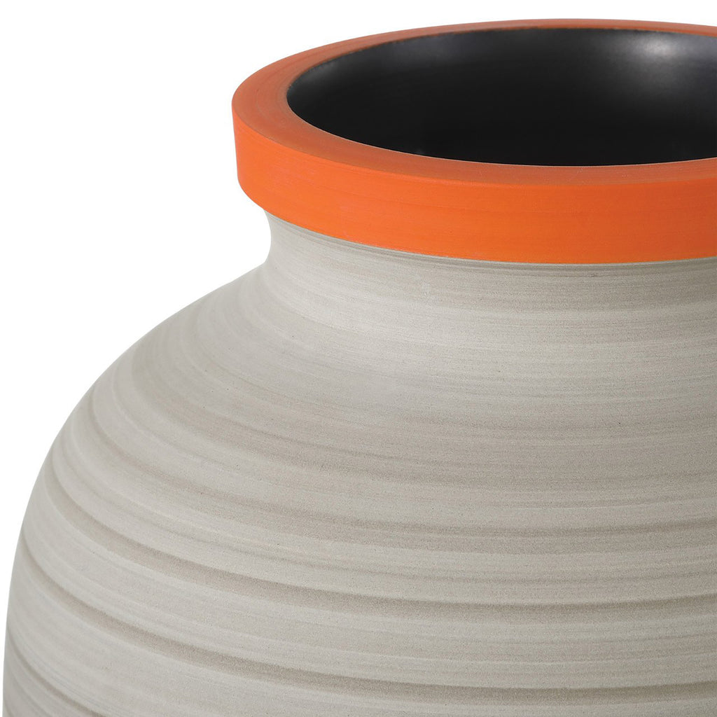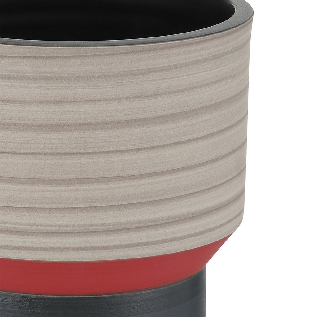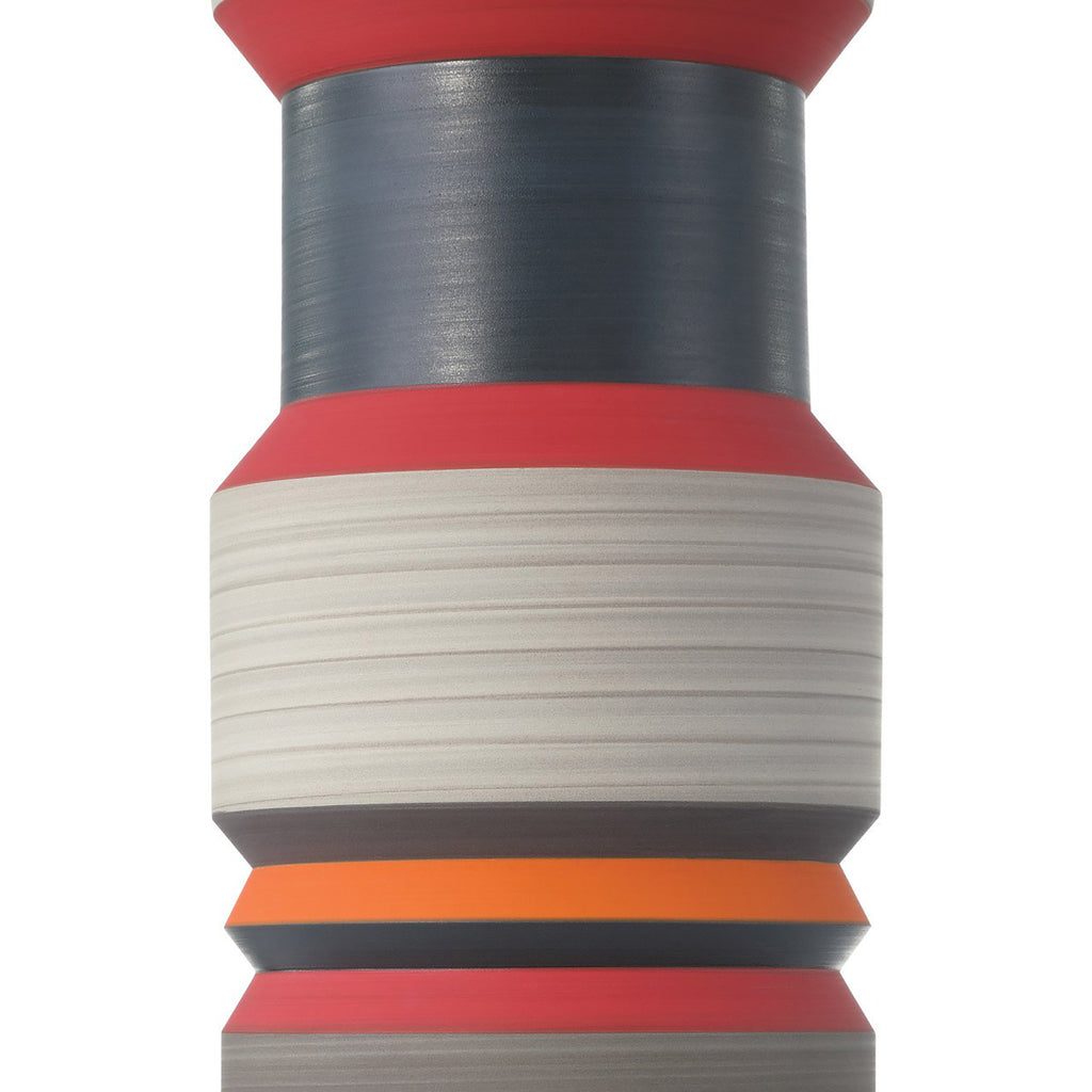 The Currey & Co Happy 80’s Black, Blue, Red & Orange Vase Set is a throwback to the decade when bold, vibrant, and eclectic ruled the stylistic spectrum—from interior design to fashion. Made of porcelain, the glazes on the exteriors of these vessels will vary because they are applied while the vases are spinning. This brings the two works of art a textural feel. The insides of the vases are covered in a black glaze, and the shapes of the vases reflect the nuances of the decade after which they are named.