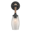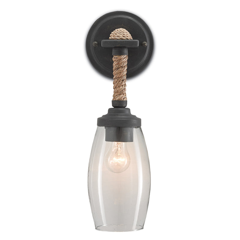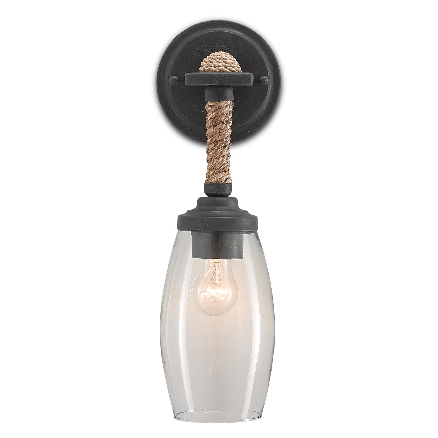 The perfect combination of natural and industrial materials, the Hightider Wall Sconce broadcasts its light through a recycled glass shade. The wrought iron frame of this fixture is finished in French black. The abaca rope wrapped around the neck of the sconce brings it a hint of texture and makes it an ideal addition to an interior meant to have a nautical flair, such as a coastal condo, a beachside cottage, a lakefront retreat or a home with a dock on the bay.