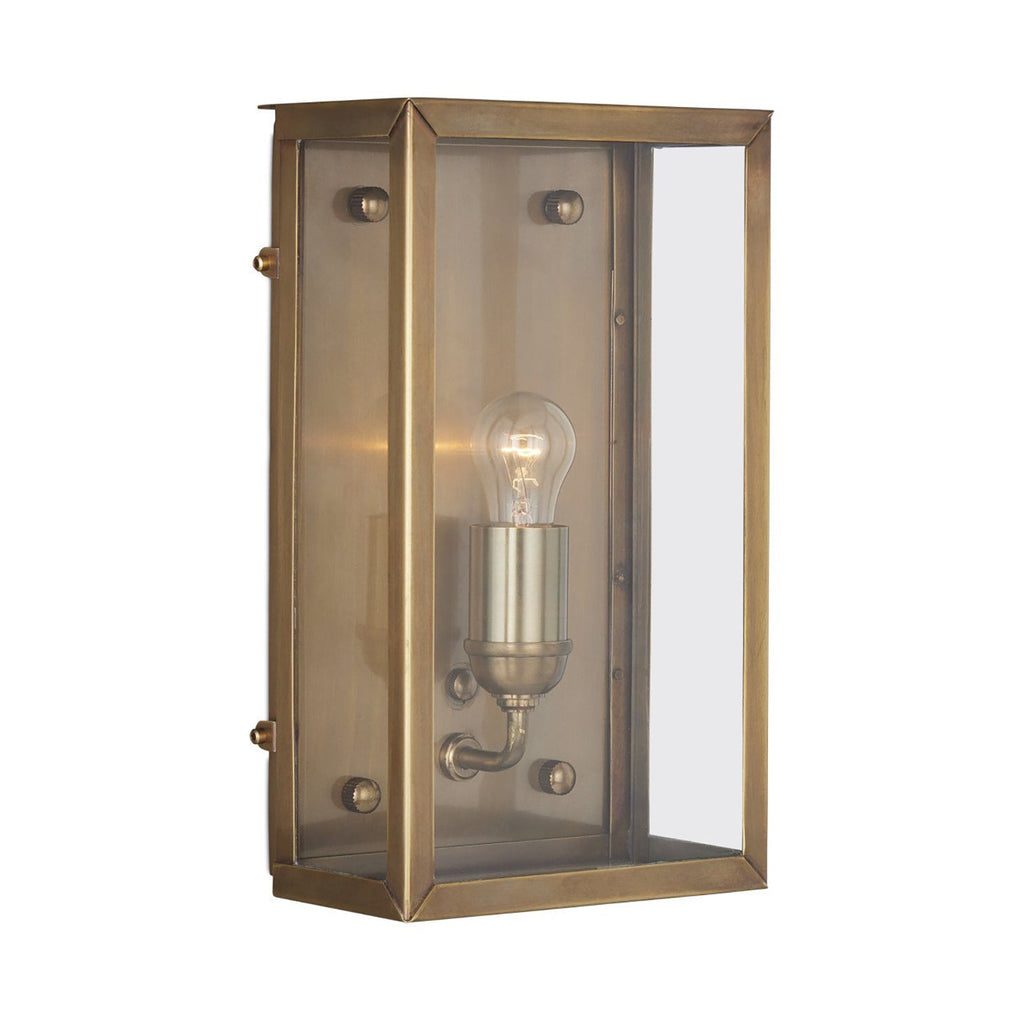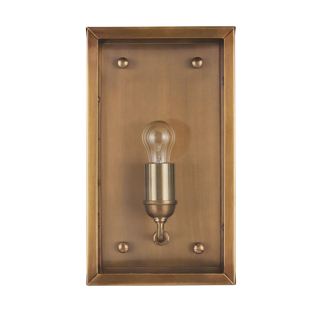 A classic design that looks as if it sprang from the great American industrial revolution, the Currey & Co Royster Outdoor Wall Sconce is made of brass in an antique brass finish. The simplicity of the design will make this gold outdoor wall sconce a versatile piece that will fit in with any number of architectural styles.